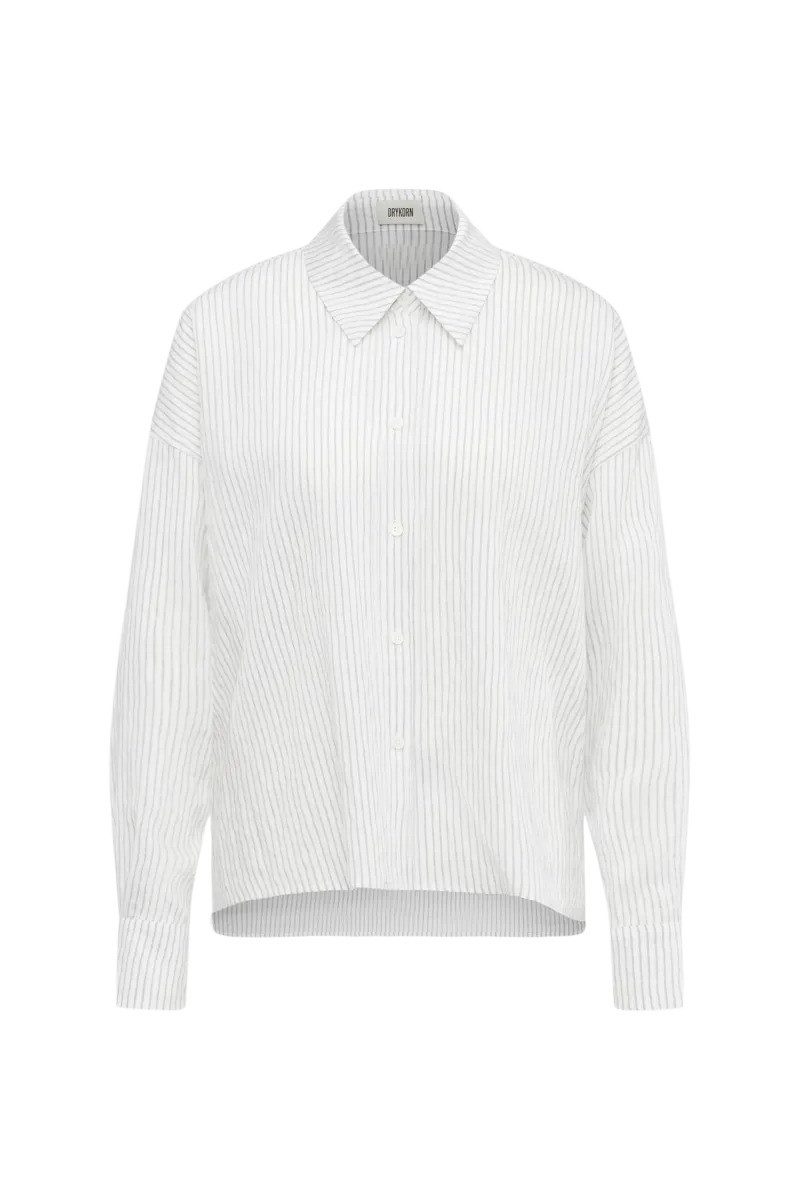 Verliebe Dich in den zeitlosen Charme der Hemdbluse CLOELIA von DRYKORNTräumst Du von einer Bluse, die sowohl im Büro als auch beim entspannten Stadtbummel eine gute Figur macht? Die Hemdbluse CLOELIA von DRYKORN ist genau das, was Dein Kleiderschrank braucht! Mit ihrem klassischen Schnitt und dem dezenten Streifenmuster bietet sie unendliche Kombinationsmöglichkeiten und verleiht jedem Outfit eine Prise Eleganz.Eine Bluse für alle FälleOb zu einem wichtigen Meeting oder einem gemütlichen Kaffee mit Freunden – CLOELIA passt sich mühelos jeder Situation an. Der feine Viskose-Mix sorgt für ein leichtes Tragegefühl, während der klassische Hemdblusenkragen und die langen Ärmel dem Design eine seriöse Note verleihen. Die H-Linie des Schnitts umspielt sanft die Figur und bietet optimalen Tragekomfort.Эко-товары trifft auf StilNicht nur stilvoll, sondern auch nachhaltig: CLOELIA besteht aus 77% Viskose, 17% recyceltem Polyamid und 6% recyceltem Polyester. Damit tust Du nicht nur etwas Gutes für Deinen Look, sondern auch für die Umwelt.Perfekt für jeden AnlassDiese Bluse ist ein echter Allrounder. Kombiniere sie mit einer schicken Hose für das Büro oder trage sie zu Jeans für einen lässigen Look. Die gestreifte Musterung fügt eine modische Raffinesse hinzu, die nie aus der Mode kommt. Leicht kombinierbar, sowohl formell als auch casual Angenehmes Tragegefühl dank hochwertigem Materialmix Stilvolles Design mit nachhaltigen Materialien Ideal für jede Gelegenheit Zeitlose Eleganz mit modernem TwistVerwöhne Dich mit der Hemdbluse CLOELIA und zeige Deinen Sinn für Mode und Verantwortung. Ein Must-have, das in keinem Kleiderschrank fehlen sollte!