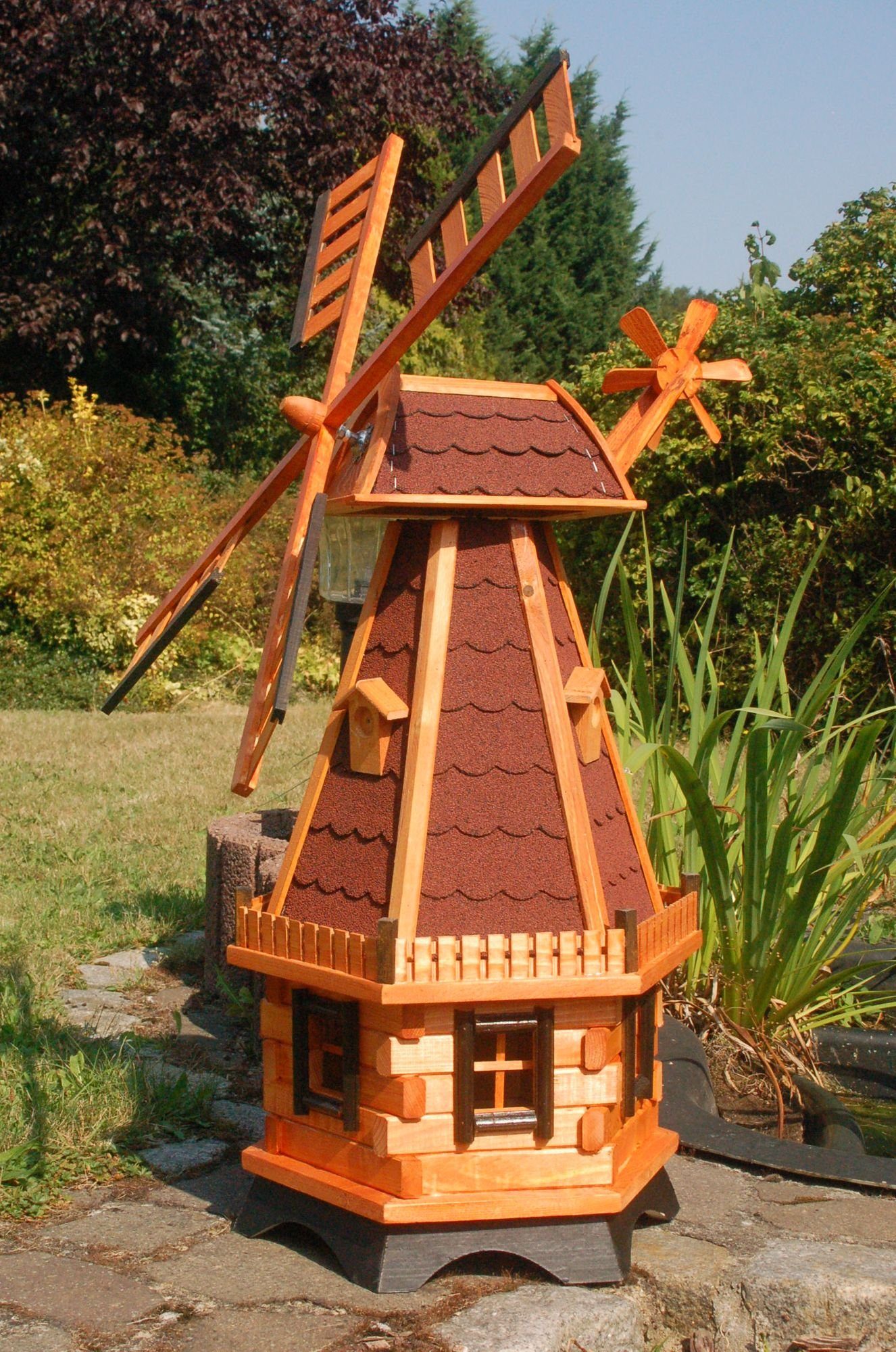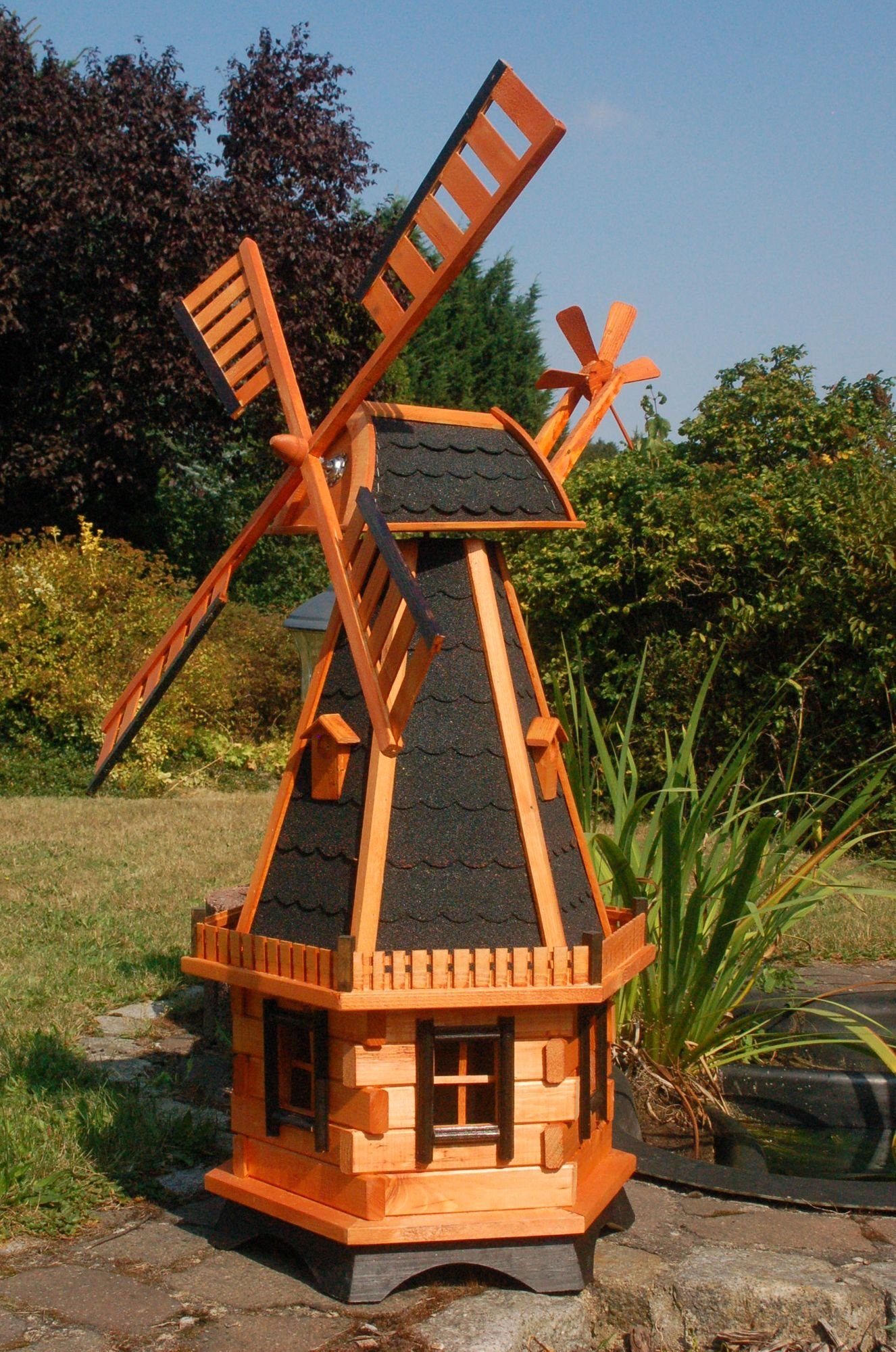 Pflege: Die Windmühle ist bereits behandelt, bitte machen Sie das aber nochmal, bevor Sie sie der Witterung aussetzen. Damit verlängern Sie die Haltbarkeit und Farbechtheit des Holzes.