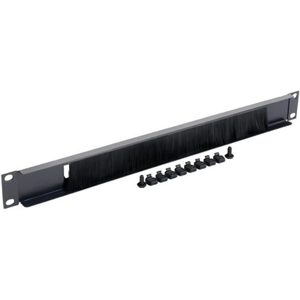 Mit der Kabelführung mit Bürstenleiste können Kabel im Serverschrank ordentlich eingeführt werden wenn alle leeren Räume mit Abdeckplatten verschlossen sind.