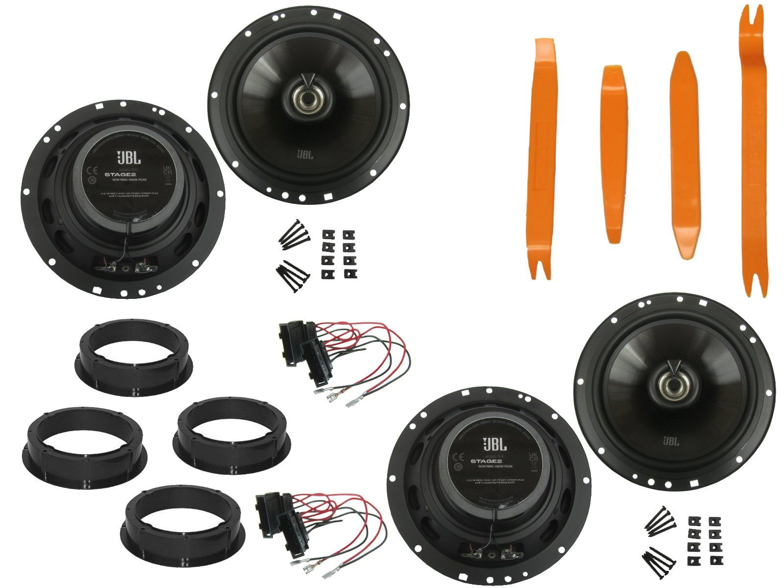 Lieferumfang | 4x Stück JBL koaxial Lautsprecher 4x Lautsprecher Adapter Ringe 4x Lautsprecherstecker 4x Ausbaubügel |