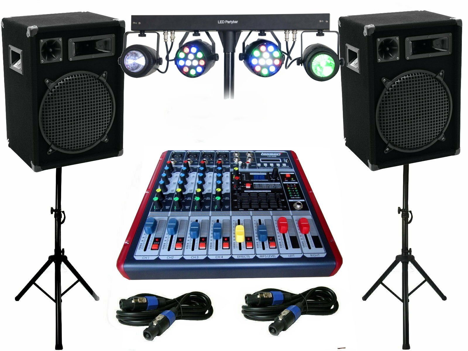 Lieferumfang | 2 x 30 cm 3wege Box 2 x Pa Kabel 1 x Powermixer 1x Lichtset |