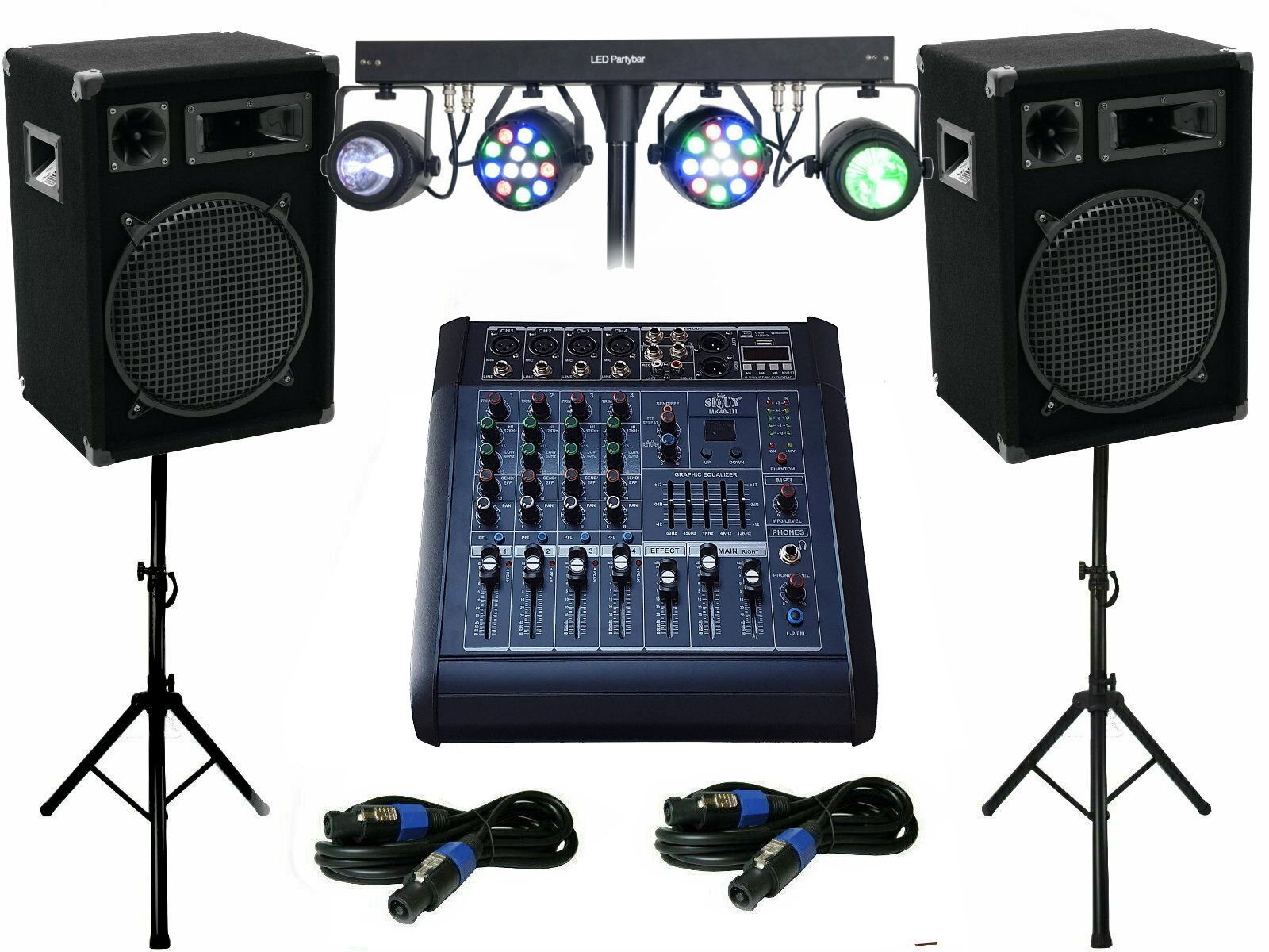 Lieferumfang | 2 x 30 cm 3wege Box 2 x Pa Kabel 1 x Powermixer 1 Dj Light Lichtset |