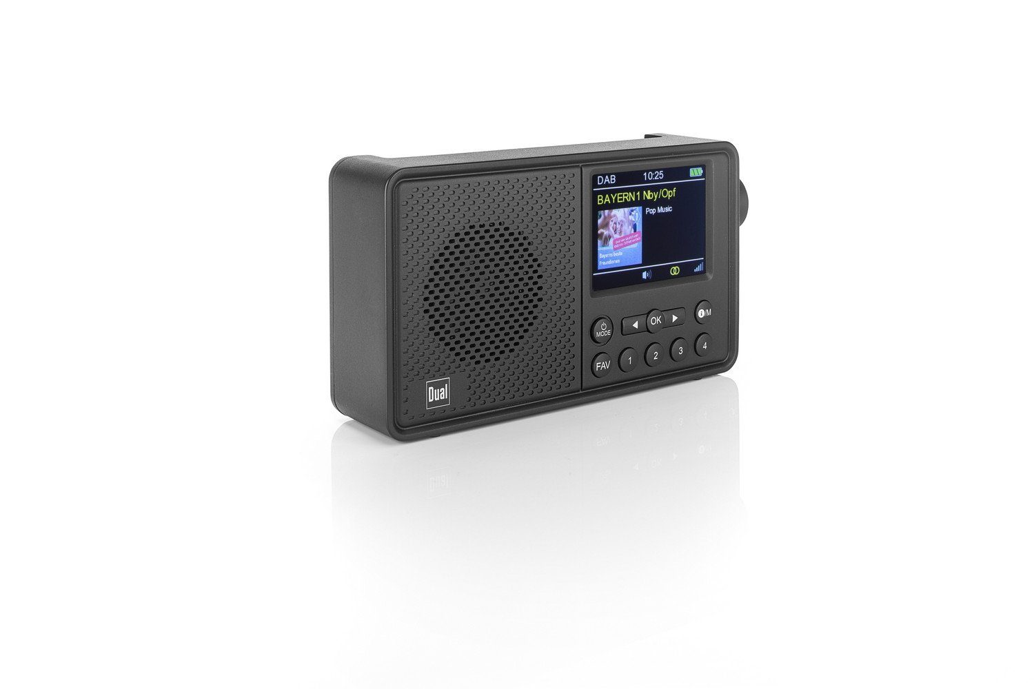 Das portable DAB+ Radio „MCR 120“ von Dual begeistert durch große Funktionsvielfalt. Dabei ist es durch die kompakte Bauweise überraschend mobil und erweist sich als idealer Begleiter im Alltag. Dank neuester Technologie liefert das MCR 120 hervorragende Soundperformance. Über den seitlich angebrachten Drehregler lässt sich die Lautstärke bequem regeln. Die eingebaute wiederaufladbare Batterie hat mit 2.200 mAh genügend Kapazität für bis zu 10 Stunden Spielzeit (60% Lautstärke). Zum Laden das Gerät einfach mit einem modernen USB-C Kabel verbinden. Auf den Speichertasten an der Front lassen sich 4 Radiosender speichern und direkt anwählen. Der Senderspeicher mit insgesamt 20 Plätzen kann mit der Taste „FAV“ an der Front aufgerufen werden. Ideal um die Lieblingssender aus dem vielfältigen Angebot nach dem eigenen Geschmack zu sortieren. Das 2,4“ große TFT-Display zeigt viele Senderinfos sowie DAB+ Slideshow-Bilder an. Zudem ermöglicht es eine einfache und intuitive Bedienung. Über die Bluetooth-Schnittstelle kann z.B. ein Smartphone oder Tablet verbunden werden und eigene Musik wiedergegeben werden. Mit dem Kopfhöreranschluss lässt sich die Lieblingsmusik ungestört genießen. Dank der Weckfunktion mit 2 unabhängig einstellbaren Weckzeiten kann das Gerät sogar als Wecker genutzt werden (nur im Netzbetrieb).