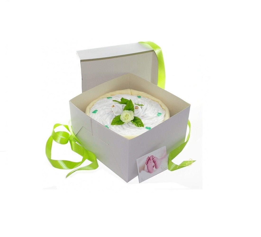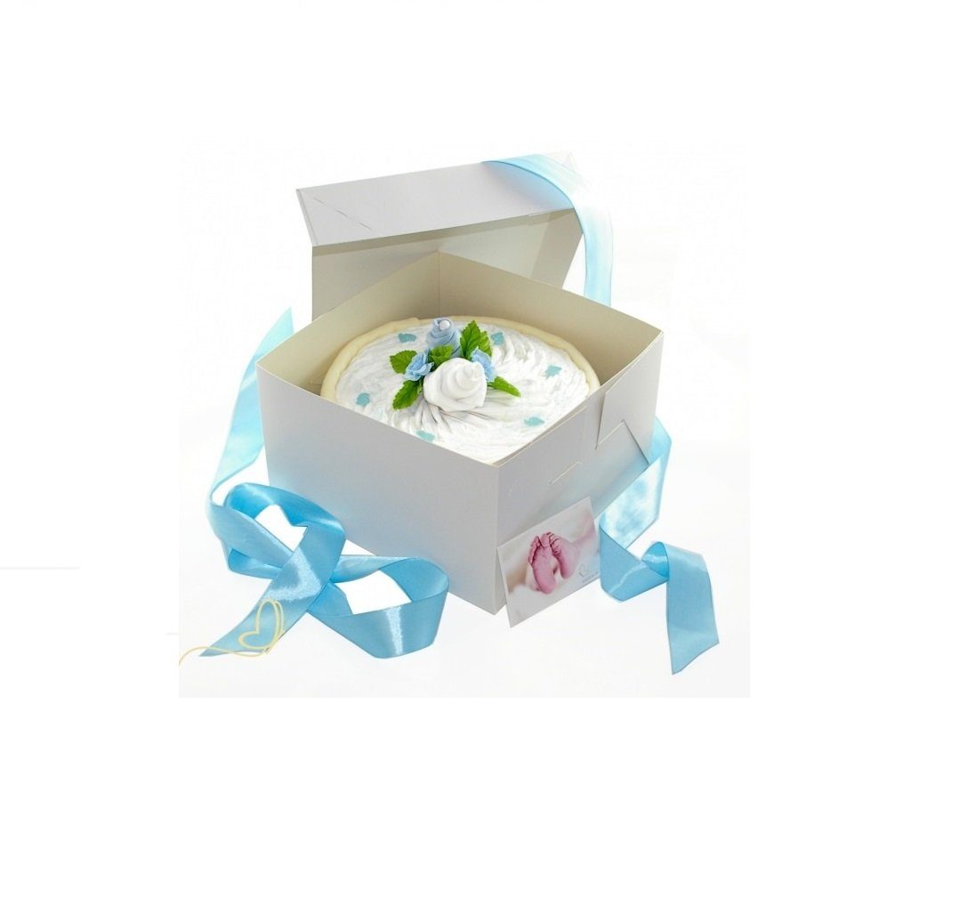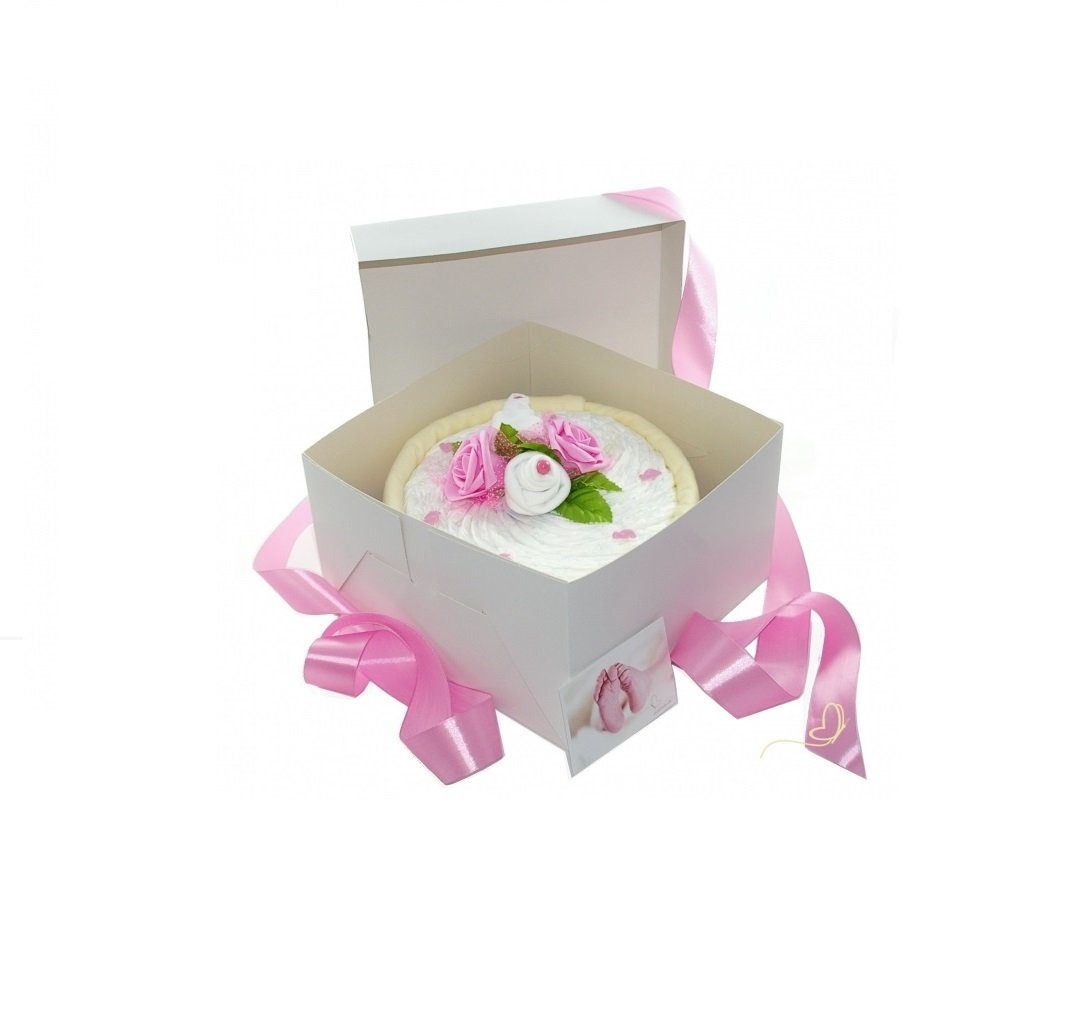 ALS GESCHENK VERPACKT - Das besondere an dieser Windeltorte ist die Verpackung! Sie wird wie ein echter Kuchen ausgeliefert und sorgt nach dem Öffnen für eine Überraschung!