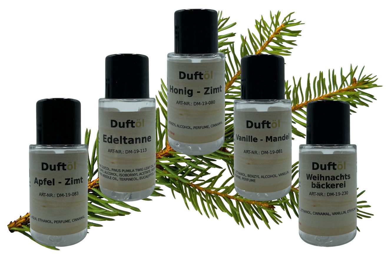 Das exklusive Set mit weihnachtlichen Düften lädt zum Genießen und zum Verschenken ein. Es beinhaltet folgende Duftrichtungen: Apfel - Zimt, Edeltanne, Honig - Zimt, Vanille - Mandel, Weihnachtsbäckerei (Vanille, Zimt) Ist in dem Set eine Duftrichtung enthalten, die Ihnen nicht zusagt? Kein Problem! In den Bildern ist eine Übersicht von allen Duftrichtungen enthalten, die wir derzeit im Programm führen. Wählen Sie einfach den Duft / die Düfte aus, die Sie gerne haben möchten und schicken uns eine Nachricht. Die 20ml großen Flaschen beinhalten genug Duftöl, um bspw. ca. 5-8 Liter Aufgusswasser in der Sauna zu beduften.