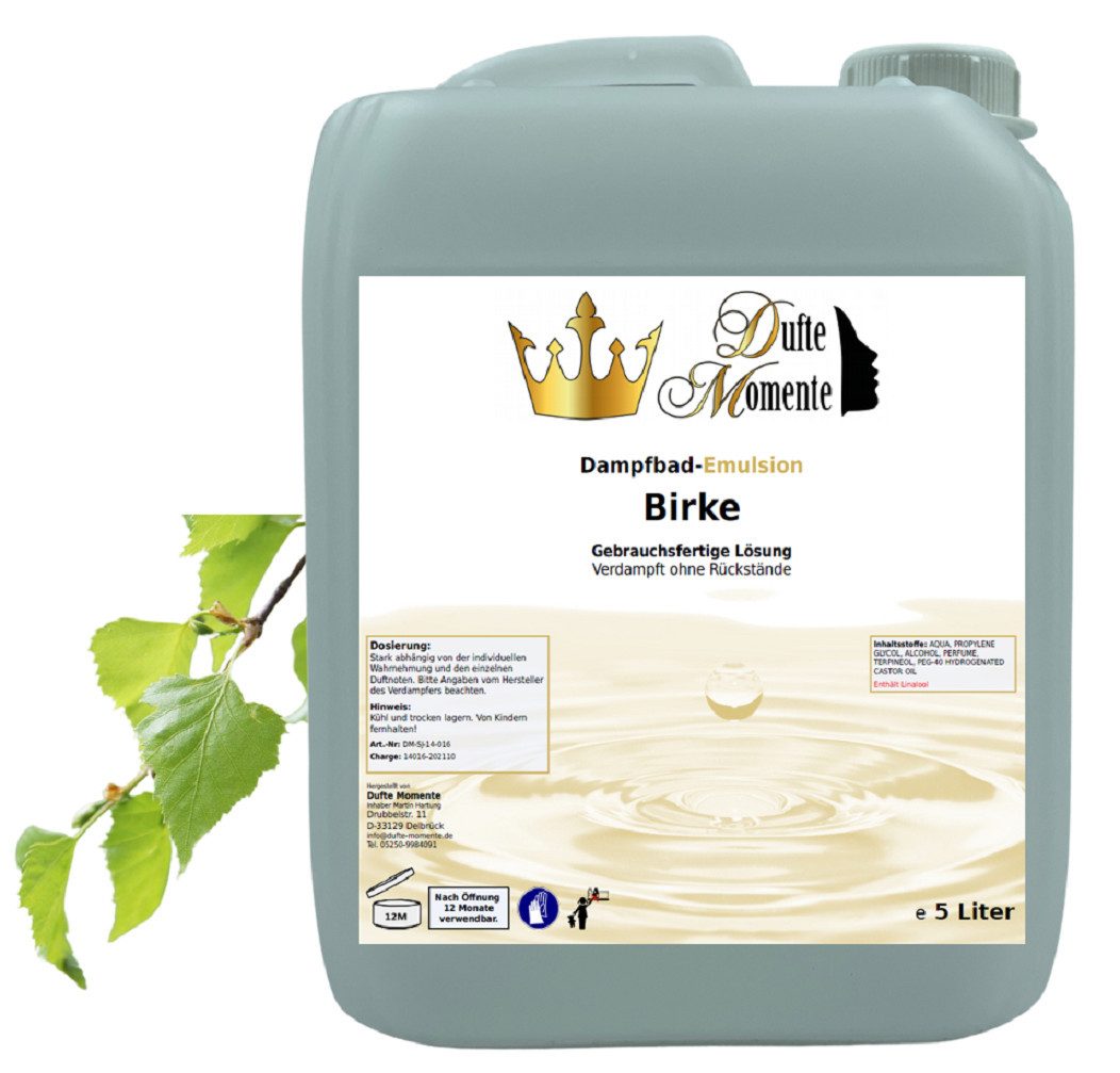 Dufte Momente Duftöl Dampfbad Emulsion Birke 5 Liter, gebrauchsfertig, vegan und ohne Tierversuche