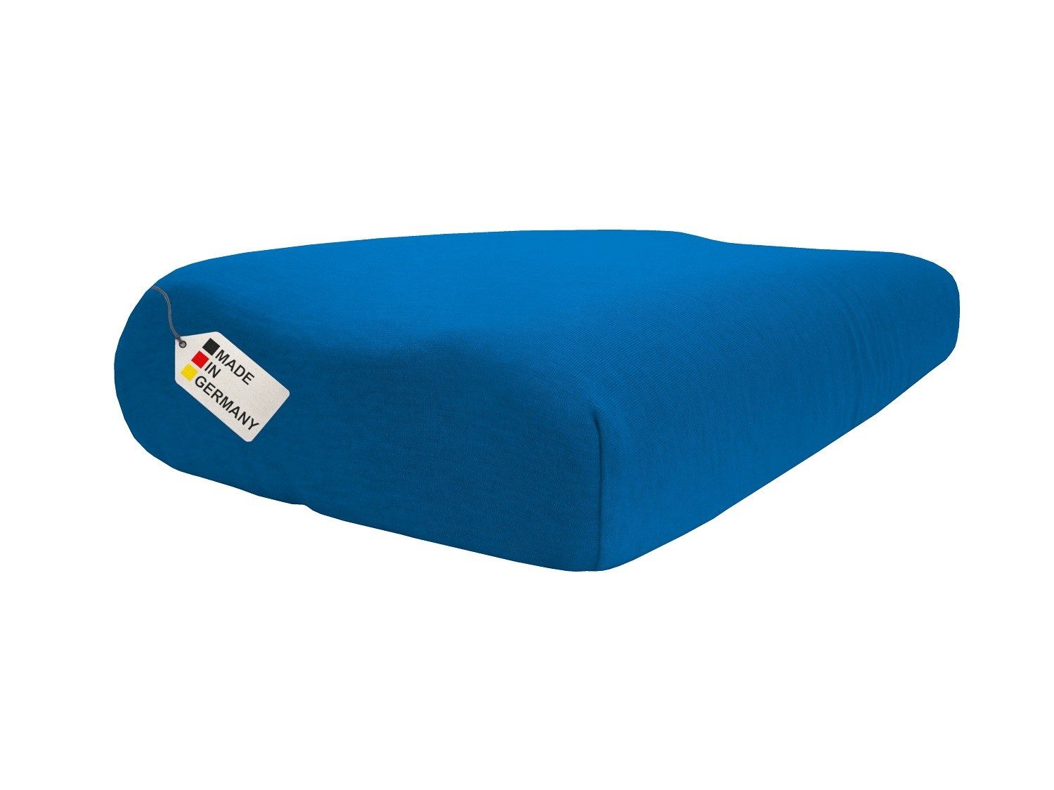 Die Bezüge sind aus 100% feinst gekämmter Baumwolle gefertigt. Die besonders schwere Ausführung und überdurchschnittliche Stoffdicke von ca. 200g/m² garantiert eine hohe Formstabilität und Langlebigkeit des Doppel-Jersey.