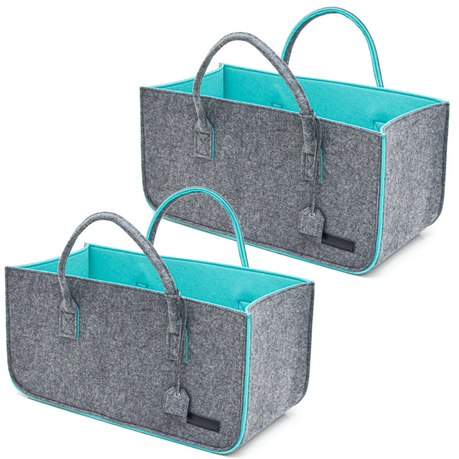 Bis zu 25 kg: 2 extrem belastbare Filz Shopper Treppenkorb, Brennholztasche oder Wäschekorb: Die große Tragetasche ist nicht nur schick, sondern sogar bis zu 25 kg belastbar.