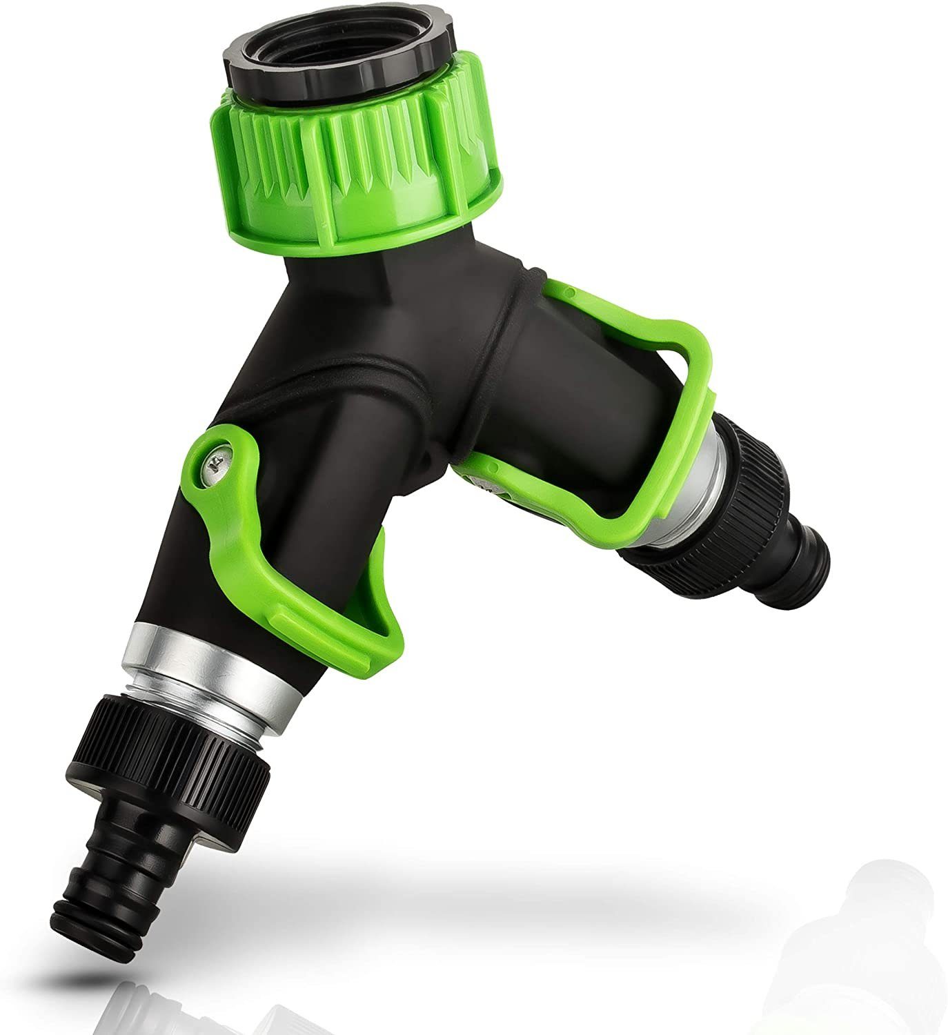 Der Dunlop zwei Wege Verteiler löst alle Ihre Probleme, wenn es nur eine Wasserquelle in ihrem Garten gibt. Egal, ob sie nun zwei Geräte gleichzeitig an den Gartenschlauch anschließen möchten, oder direkt den Wasserhahn verdoppeln: Das Rasensprengen und das Gießen der Blumenbeete kann nun parallel erfolgen. Sie können den Pool volllaufen lassen und sich gleichzeitig schon unter der Gartendusche abkühlen. Nicht muss mehr an- oder abgebaut, an- oder umgesteckt werden.