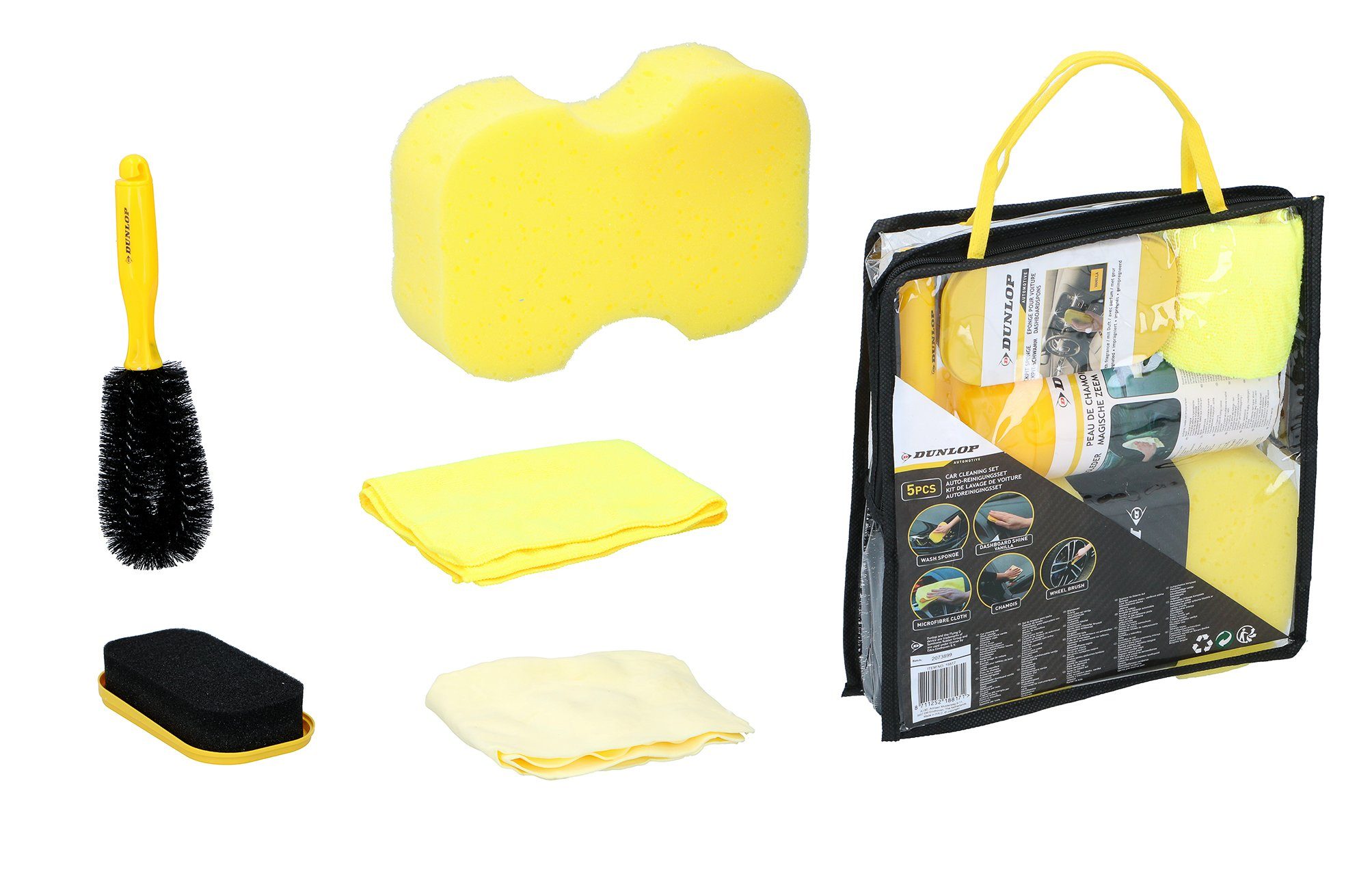 -1x Waschschwamm -1x Cockpitschwamm mit Armaturenbrettpolitur und Vanilleduft in eigener Kunststoffdose -1x Chamois-Fensterleder in Kunststoffröhre -1x Mikofasertuch -1x Felgenbürste -1x Tragetasche mit Henkel und 2 Reißverschlüssen