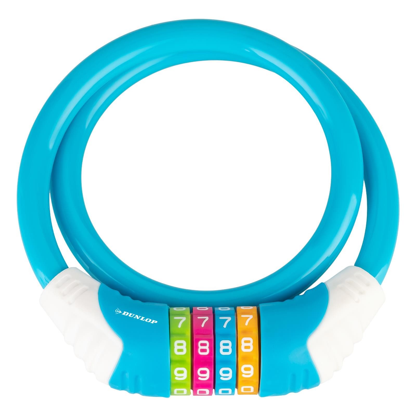 EINFACH MERKEN mit FARBEN. Studien belegen, dass Kinder und Erwachsene sich Ziffernkombinationen besser merken können, wenn sie farblich unterlegt sind. Das von DUNLOP entwickelte Fahrradschloss für Kinder hat zudem extra breite Wählscheiben und ein für Kinderhände speziell angepasste Schlossverbindung.