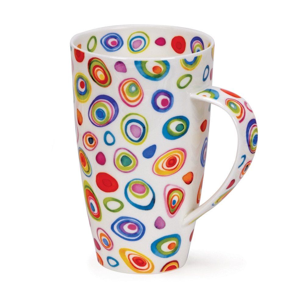 Razzmatazz ist ein wirklich auffälliges Design von Caroline Bessey. Eine Vielzahl mehrfarbiger ovaler und ringförmiger Formen ist auf weißem Hintergrund gestaltet. Mit dem größten Fassungsvermögen aller Dunoontassen von 0,6 l ist Henley eine beliebte Form mit einigen tollen Designs. Sie hat einen sehr bequemen Henkel mit sanften, konkaven Seiten. Die Dunoon-Tassen aus feinem Knochenporzellan werden in Staffordshire, England, handgefertigt. Sie werden in höchster Qualität mit traditionellen Methoden hergestellt, die über 3 Familiengenerationen entwickelt und verfeinert wurden. Feines Knochenporzellan galt seit Jahrhunderten als Krönung der chinesischen Kunst der Porzellanherstellung. Es zeichnet sich durch einen festen, strahlend weißen, durchsichtig scheinenden Scherben aus, welcher von brillantem Glanz ist.