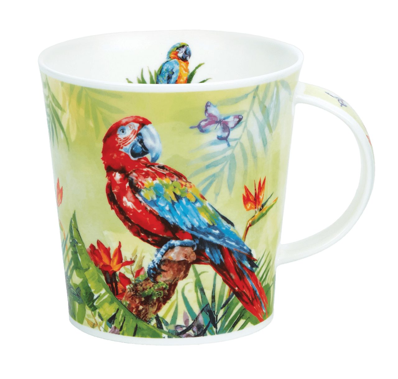 Fasziniert beobachtet der rote Ara-Papagei den vorbeifliegenden Schmetterling. Dieser Becher aus hochwertigem „Fine Bone China“ gibt Ihnen einen Einblick in die Wildnis des Amazonas. Entdecken Sie tropische Pflanzen und farbenfrohe Tiere und träumen Sie vom nächsten Urlaub in der Ferne. Mit seinen geraden Kanten und klaren Linien ist Cairngorm eine moderne Becherform mit einem Fassungsvermögen von 0,48 l. Sie ist eine größere Version der Lomond-Form, und Cairngorm ist ein hervorragendes Geschenk für jedermann. Die Dunoon-Tassen aus feinem Knochenporzellan werden in Staffordshire, England, handgefertigt. Sie werden in höchster Qualität mit traditionellen Methoden hergestellt, die über 3 Familiengenerationen entwickelt und verfeinert wurden. Feines Knochenporzellan galt seit Jahrhunderten als Krönung der chinesischen Kunst der Porzellanherstellung. Es zeichnet sich durch einen festen, strahlend weißen, durchsichtig scheinenden Scherben aus, welcher von brillantem Glanz ist.
