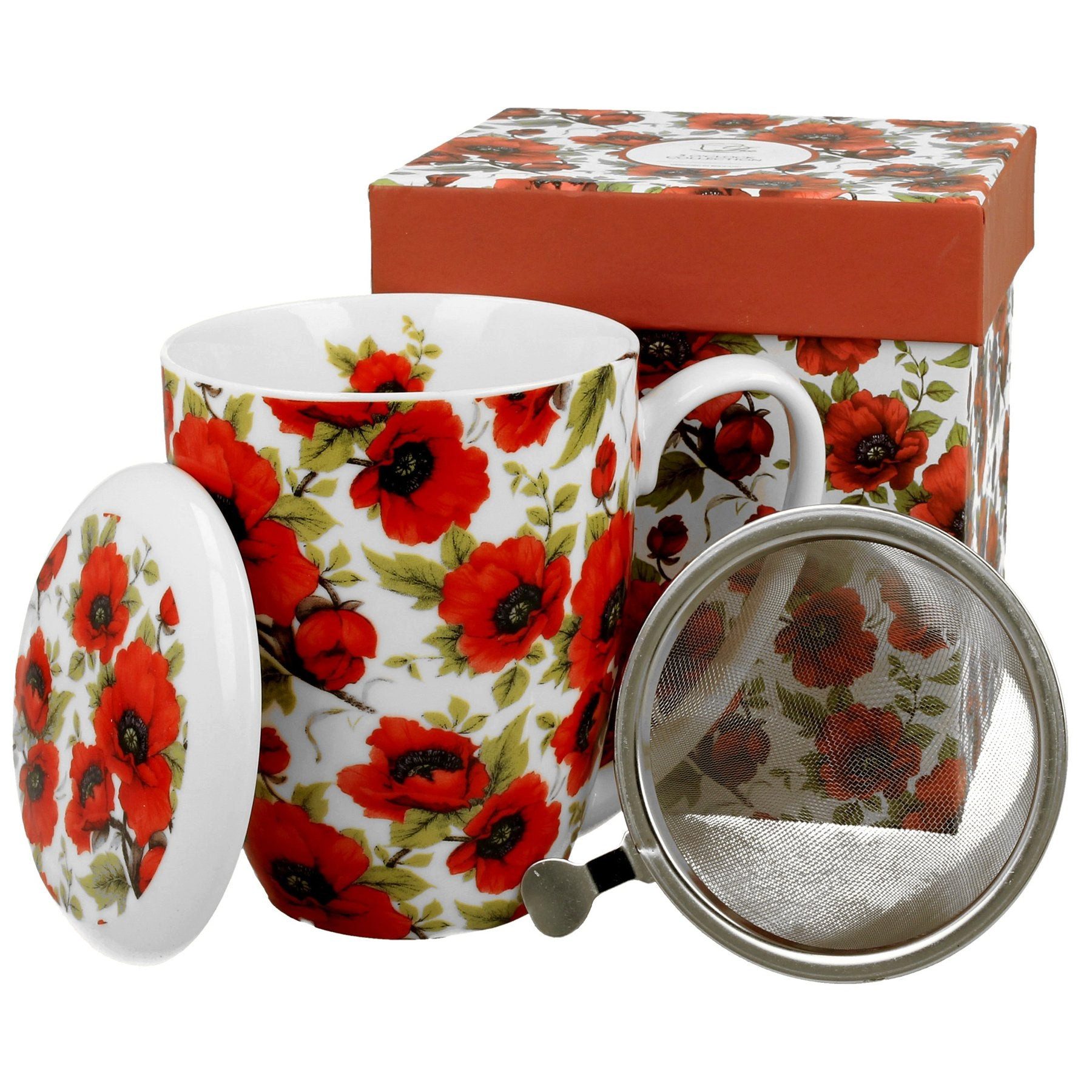 Duo-Gift Tasse Duo Tasse vintage Blumen rot 320 ml mit Teesieb, Duo Tasse vintage Blumen rot 320 ml mit Teesieb