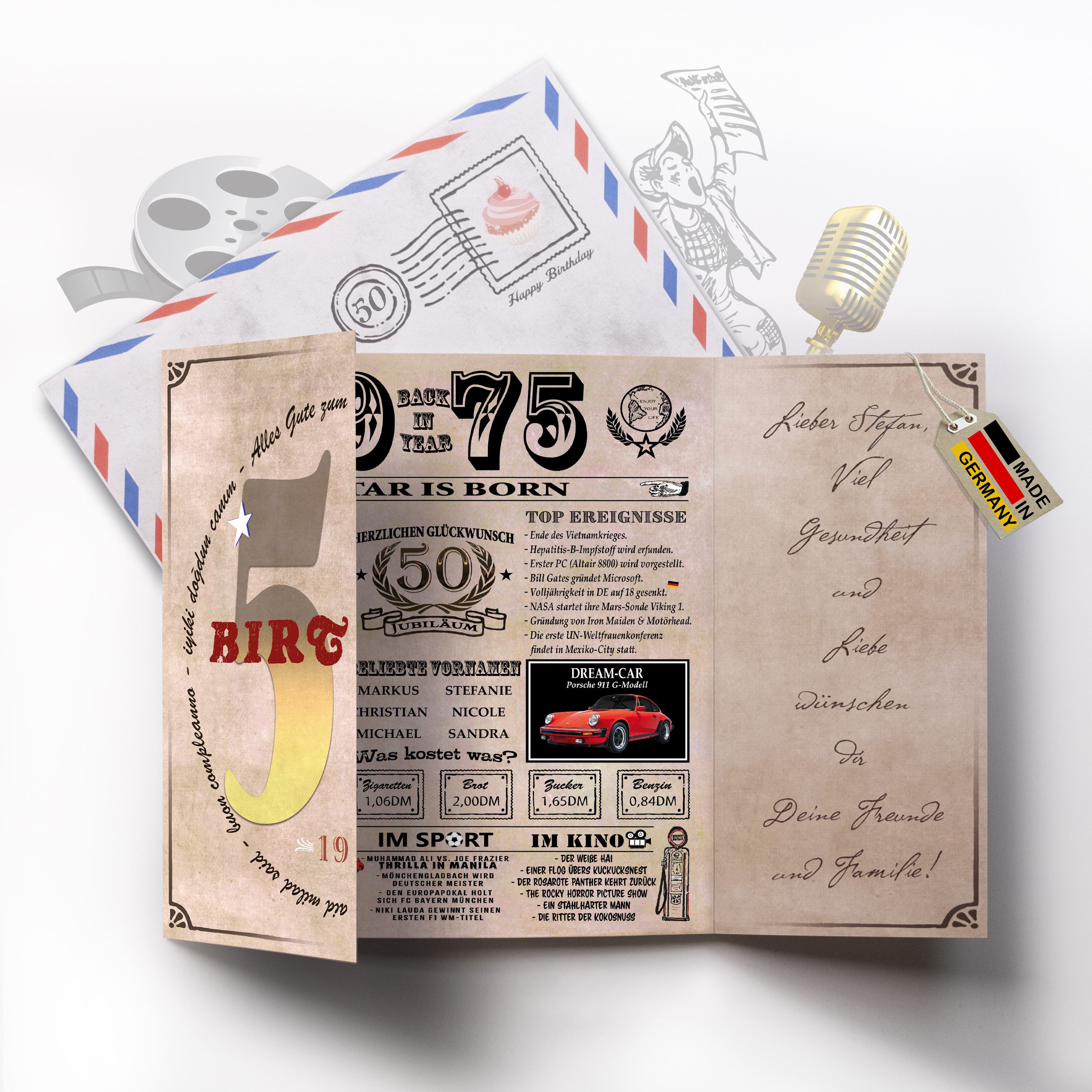 NOSTALGISCH: Du erhältst eine tolle Geburtstagskarte mit einer Jahreschronik vom Geburtsjahr des Beschenkten. Eine nostalgische Reise in die Vergangenheit...