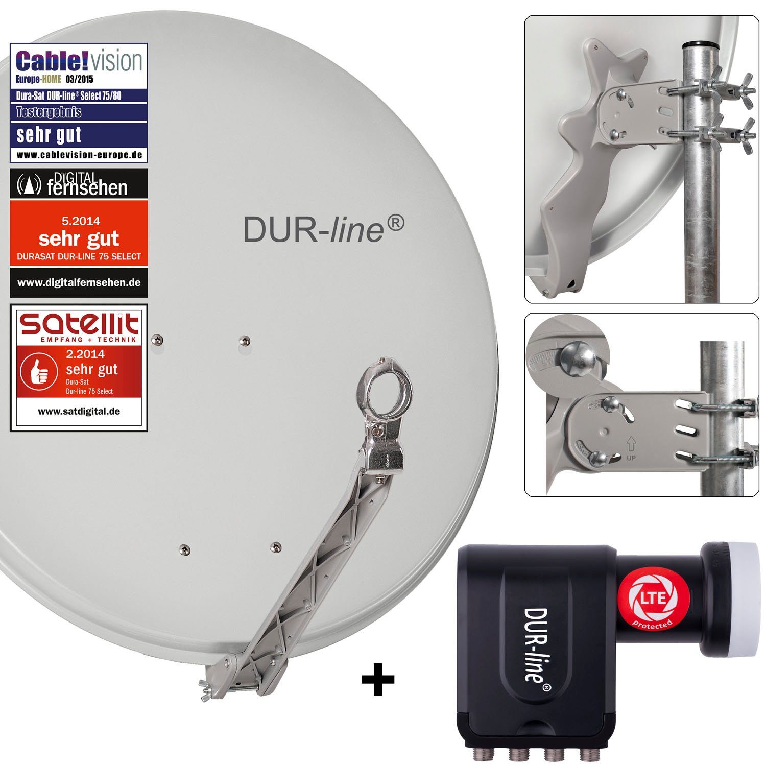 • 1 x DUR-line ® Octo LNB mit integriertem LTE-Filter