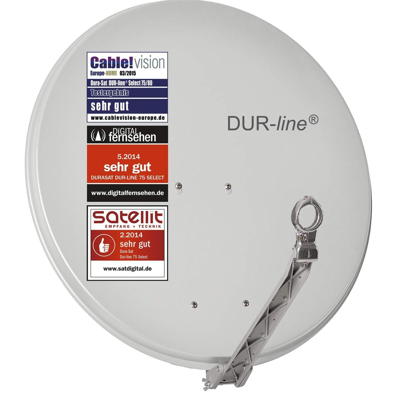 DUR-line Select 75/80cm Hellgrau Satelliten-Schüssel - 3 x Test + Sehr gut + Aluminium Sat-Spiegel