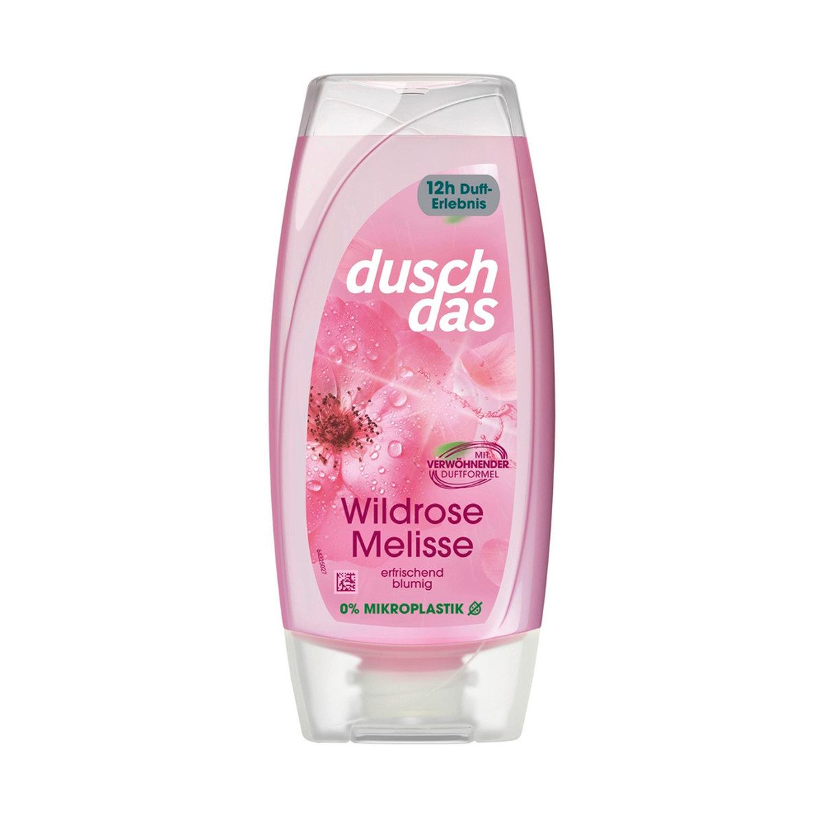 Duschdas Duschgel Wildrose und Melisse mit natürlich frischen Düften einer wilden Blumenwiese. Das Duschgel ist pH-Hautneutral und mit dermatologisch getesteter Hautverträglichkeit.