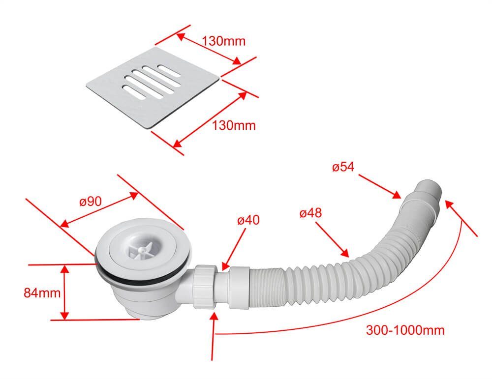 Lieferumfang | Ablaufgarnitur Ablaufschlauch Abdeckung |