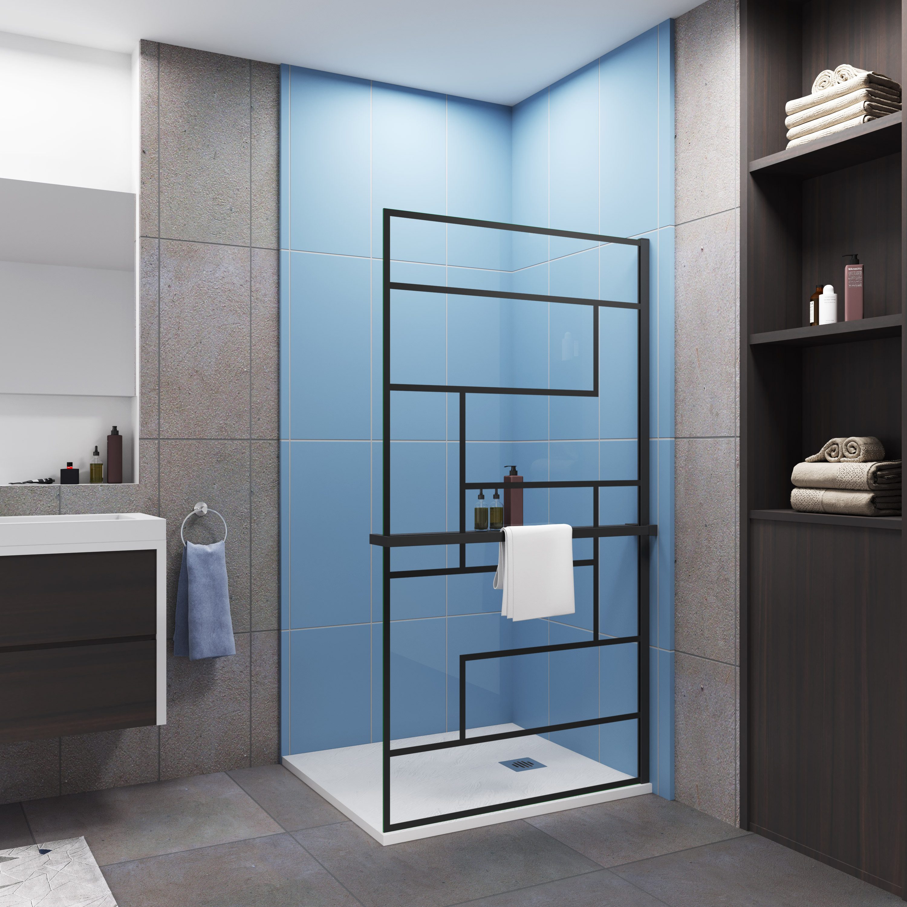 Walk-in-Dusche Walk in Dusche 8mm ESG 200cmDuschwand Ablage Unregelmäßige Streifen