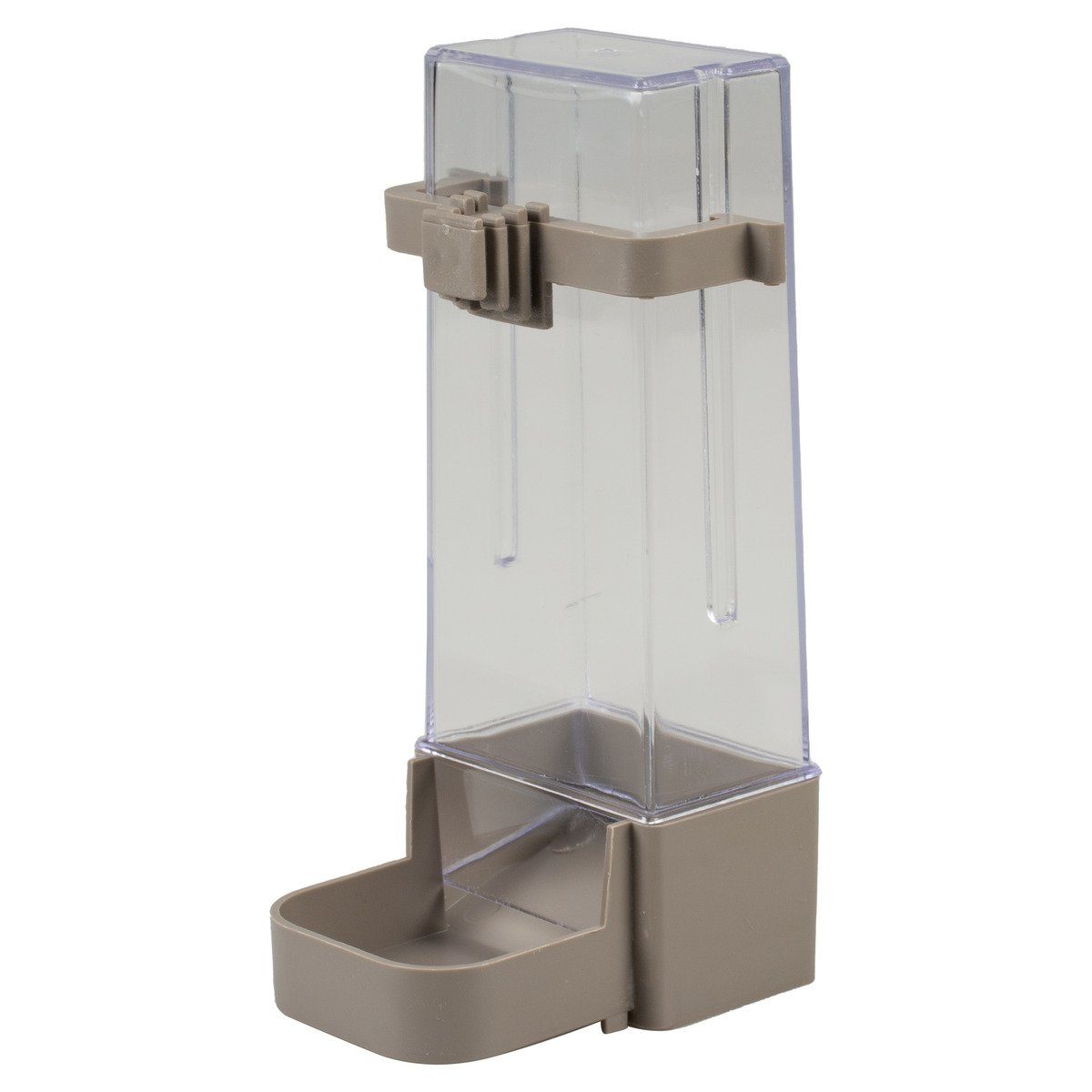 Der transparente Futterspender von duvoplus eignet sich ideal für Wellensittiche. Er ist leicht am Käfig anzubringen. Der Futterspender ist aus Kunststoff gefertigt und sehr hygienisch.