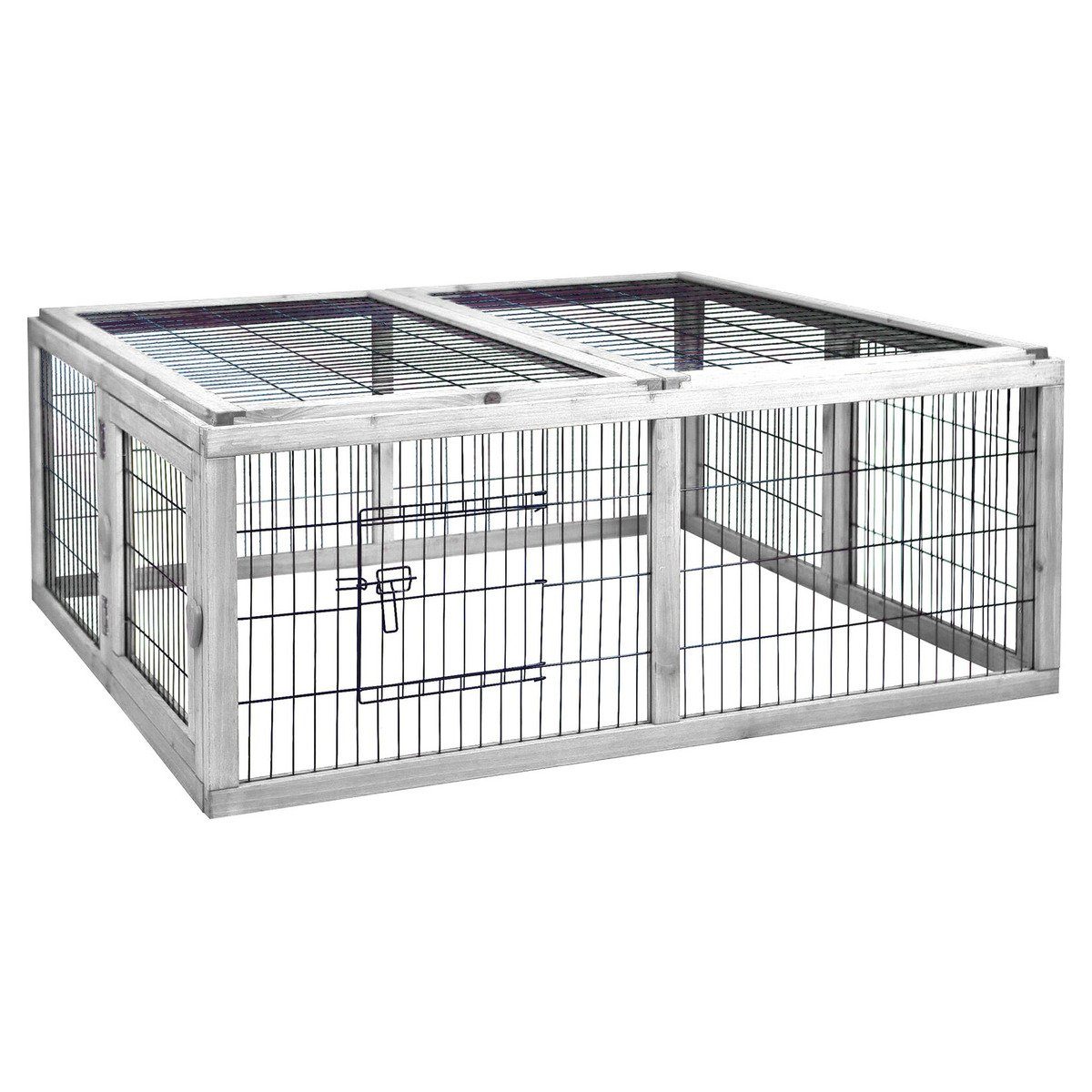 Der Duvo+ Woodland Kaninchenauslauf Silvestre ist ein Auslauf, der sich dafür eignet, Ihrem oder Ihren Kaninchen mehr Bewegungsraum zu geben! Der Auslauf verfügt über 2 Gittertüren aus Metall mit Schieberiegel und eine abnehmbare Platte, die sehr nützlich ist, um den Auslauf mit einem Kaninchenstall zu verbinden. Der Stall ist zusammenklappbar, was das Verstauen vereinfacht.