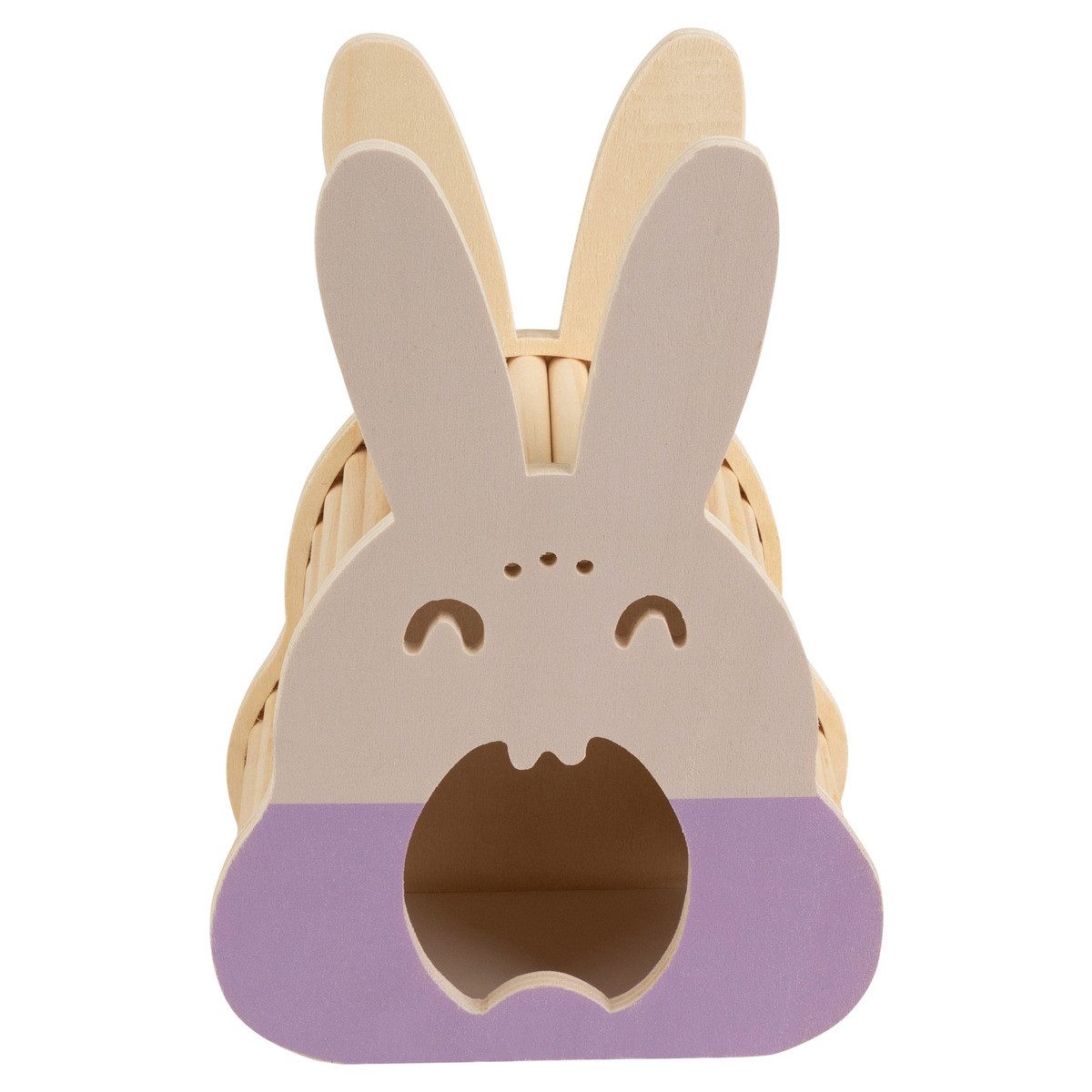 Dieses duvoplus Holzspielhaus ist das ultimative Geschenk für Ihren Kleinsäuger. Es bietet Ihrem Haustier einen sicheren Platz zum Ausruhen, Spielen und Nagen. Langeweile kommt hier bestimmt nicht auf! Holzspielzeug fördert außerdem den natürlichen Kauinstinkt und hält die Zähne gesund. Kleinsäuger müssen nagen, um das Wachstum ihrer Zähne unter Kontrolle zu halten. Das coole Design in Form eines Kaninchens sorgt für einen spielerischen Touch. Dank der verwendeten tierfreundlichen Farbe ist dieses Spielzeug 100 % sicher.