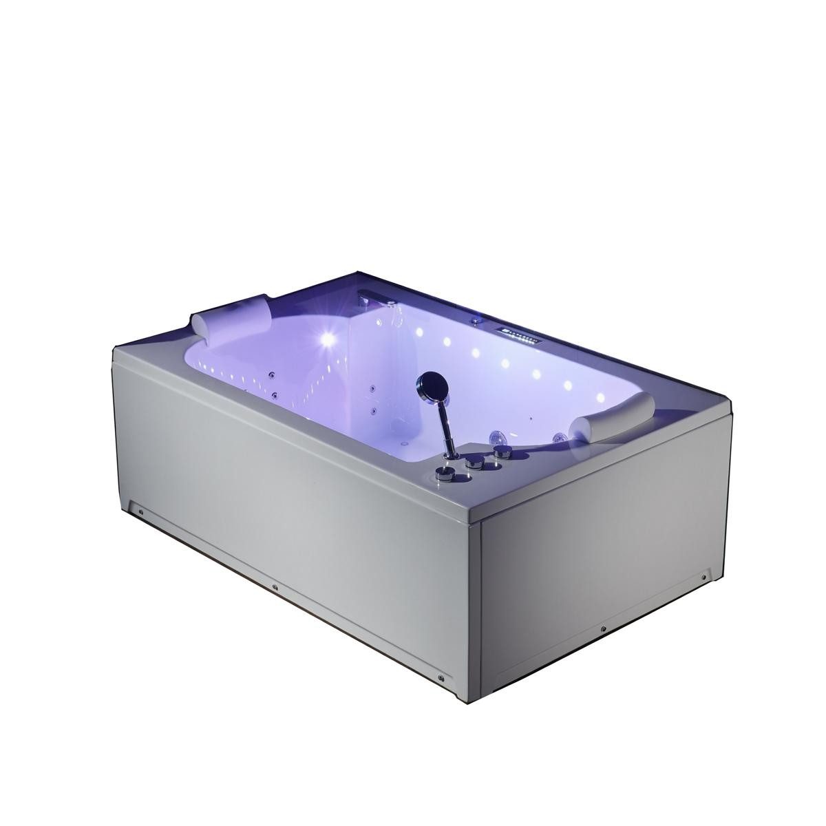 Während Sie in der Wanne im warmen Wasser entspannen, sorgen 54 Massagedüsen für Ihr Wohlbefinden. 4 große Jets und 26 kleine Jets in den Sitzflächen und Seitenwänden des Beckens bewirken durch den Ausstoß von Wasser und Luft eine entspannende Hydromassage des gesamten Körpers. 24 Bodenjets (4 davon beleuchtet) versetzen das Wasser im Whirlpool zusätzlich in Vibration und sorgen für ein tolles Sprudelerlebnis, was vitalisierend wirkt.