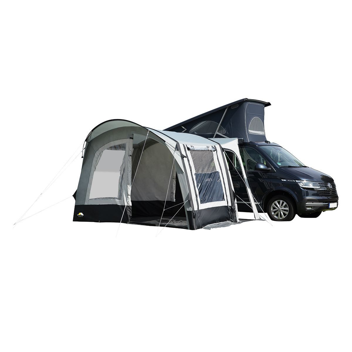 Rodeo Air überzeugt durch seine Funktionalität und durch zusätzliche Ausstattungsmerkmale wie z.B. die extra tiefe Schleuse inklusive zwei Eingangsmöglichkeiten. Das Vordach schützt die Vorderwand, zahlreiche Gazeeinsätze sorgen für eine gute Belüftung im Zelt.