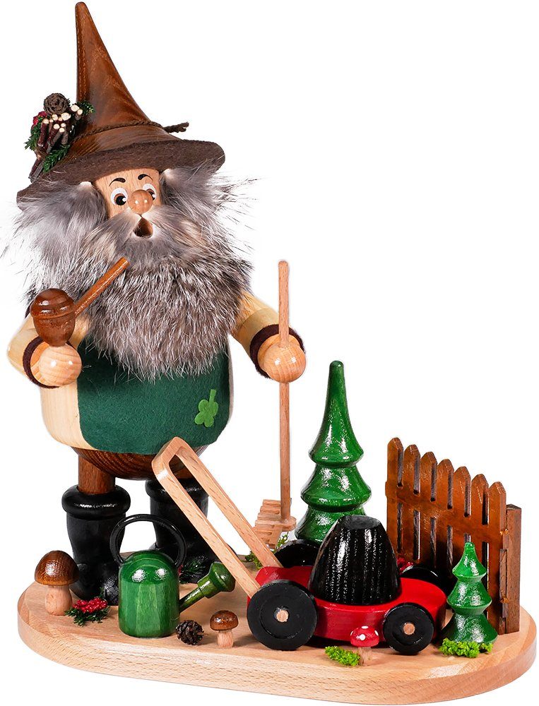 Die urigen Waldwichtel aus der Drechselwerkstatt Uhlig fallen sofort auf. Ein handgedrechselter Körper aus heimischer Kiefer, die Füße aus Eschenholz und der Sockel aus massiver Buche. Der Kopf: handbemalt mit einem wallenden Rauschebart. Всеs liebevoll per Hand zusammengesetzt und mit echten Beeren und Kräutern aus den erzgebirgischen Wäldern verziert und schon ist er fertig - der Echte Erzgebirgische Räuchermann® - Original DWU Wichtel. Sie erhalten ein Qualitätsprodukt Erzgebirgischer Holzkunst® an dem Sie und auch nachfolgende Generationen lange ihre Freude haben werden. Die Farbe der Haare und des Bartes sind je nach der Beschaffenheit des Felles. Funktionsweise: Öffnen Sie einfach den Rumpf des Wichtels und stellen ein angezündetes Räucherkerzchen hinein, sofort beginnt der weihnachtliche Duft aus dem Mundloch zu qualmen - wie zu Omas Zeiten. Die gesamte Herstellung in mühevoller Handarbeit erfolgt in der Drechselwerkstatt DWU in Sachsen als zertifiziertes Mitglied im Verband erzgebirgischer Spielzeughersteller und Kunsthandwerker e.V. Produktmaße: 22,0 cm x 26,0 cm