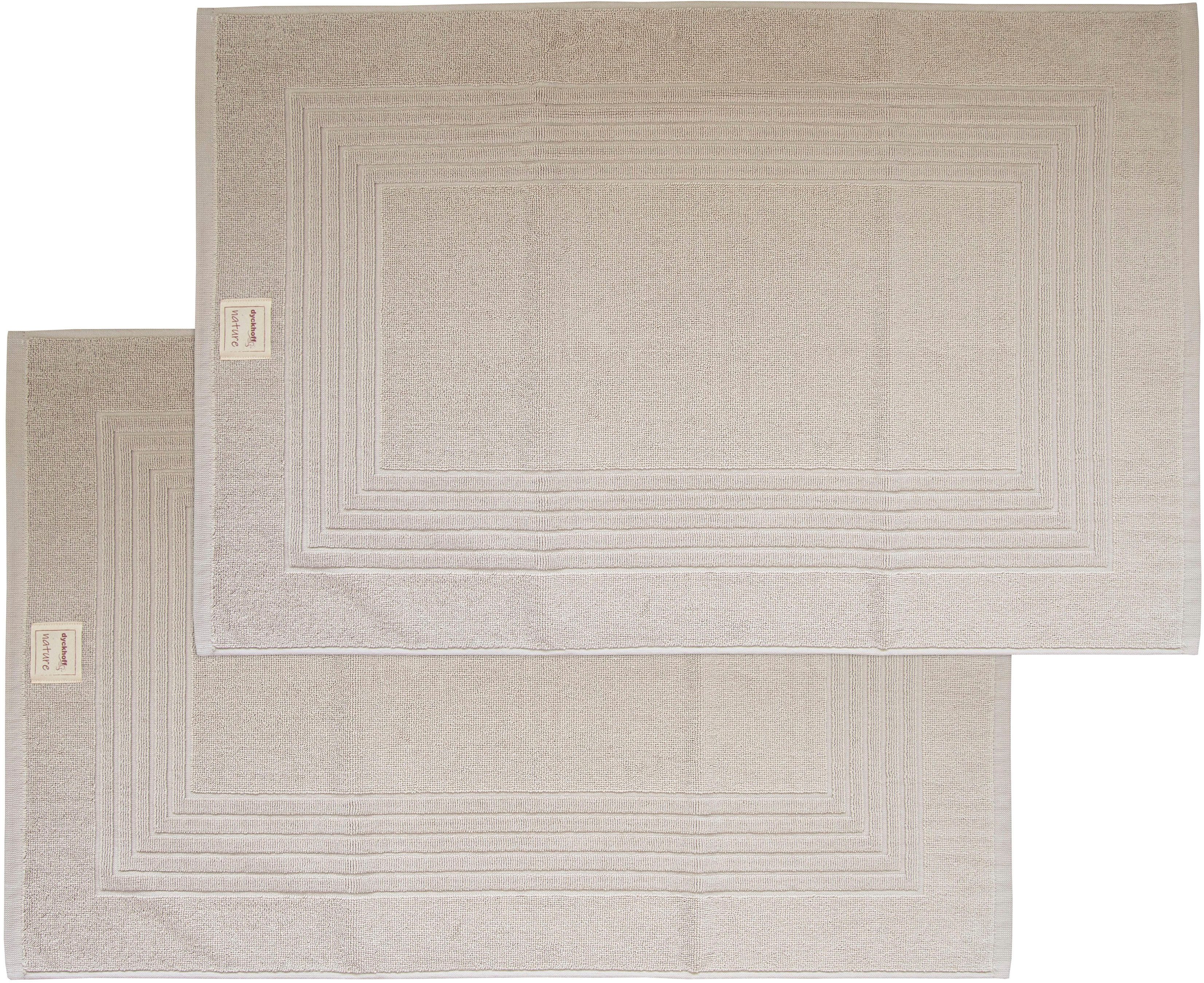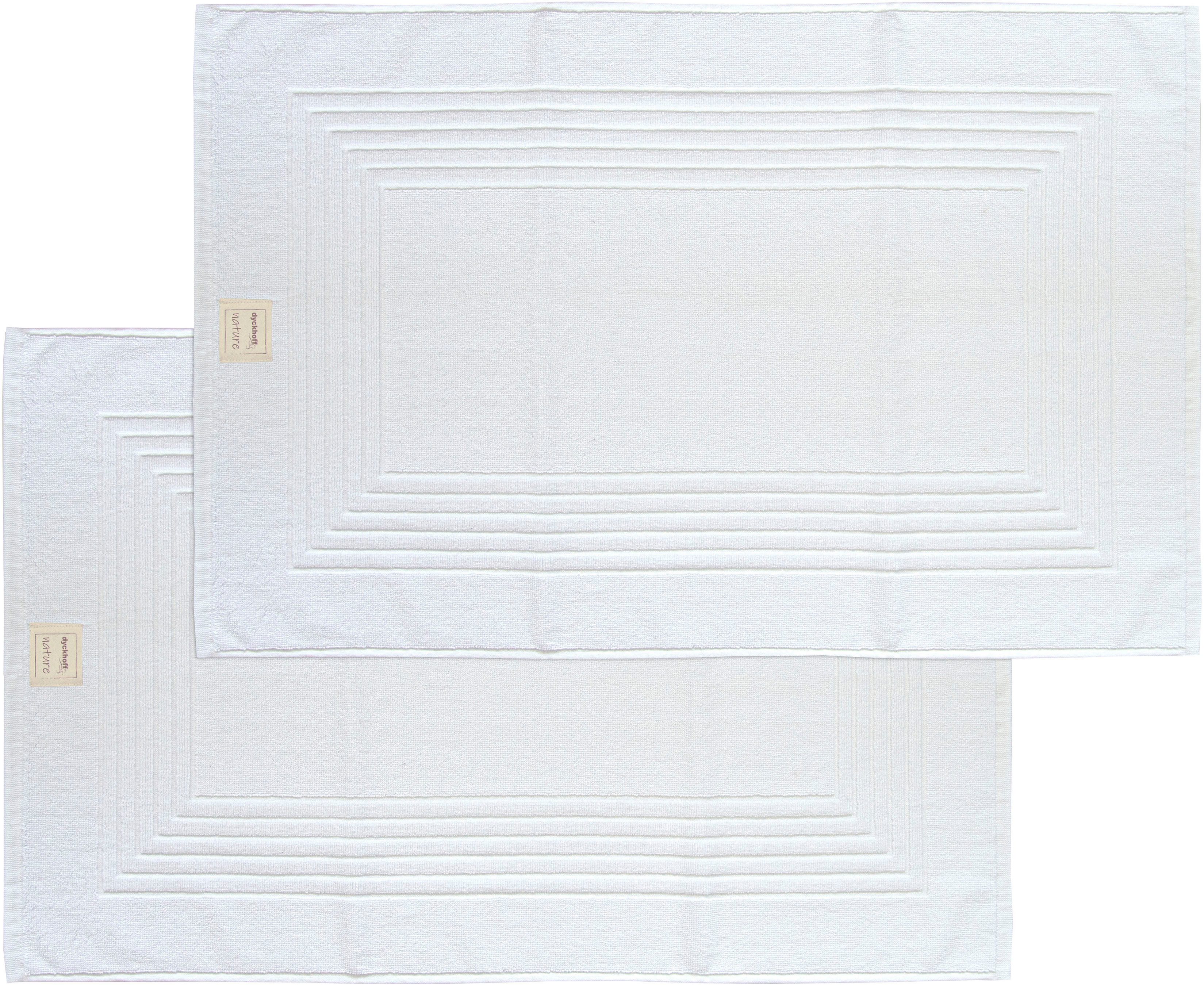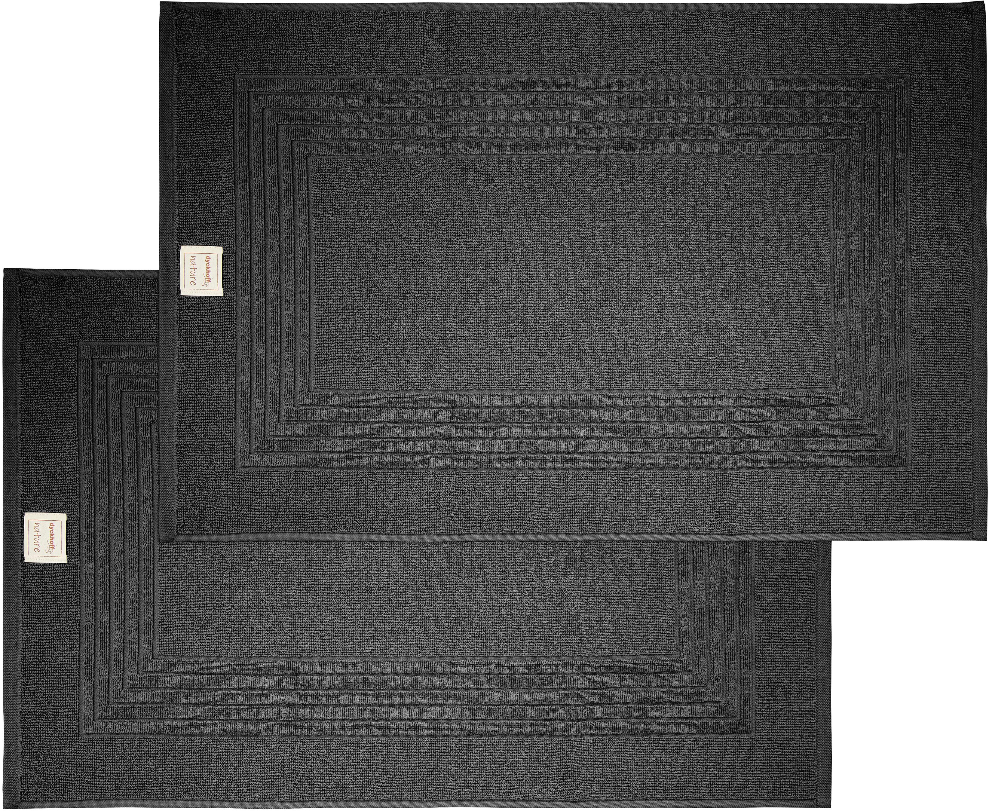 Gönnen Sie Ihren Füßen pure Wohlfühlmomente mit dem Badvorleger-Set aus der Frottierserie NATURE von Dyckhoff. Hergestellt aus GOTS-zertifizierter Bio-Baumwolle, überzeugt dieses Set mit hochwertiger Verarbeitung, exzellenter Saugfähigkeit und angenehmem Komfort. Mit einem Flächengewicht von ca. 800 g/m² sorgt der gewebte Badvorleger für ein angenehm weiches Laufgefühl und bleibt dabei besonders strapazierfähig. Das schlichte Design mit dezenten Reliefstreifen fügt sich harmonisch in jedes Badezimmer ein und lässt sich ideal mit den weiteren Produkten der Frottierserie Nature kombinieren. Passend zum Badvorleger sind Waschhandschuhe, Gästetücher, Handtücher, Duschtücher und extra große Liegetücher erhältlich – für ein perfekt abgestimmtes Badezimmerambiente. Zudem ist der Badvorleger für Fußbodenheizungen geeignet und bleibt auch nach häufigem Waschen formstabil.