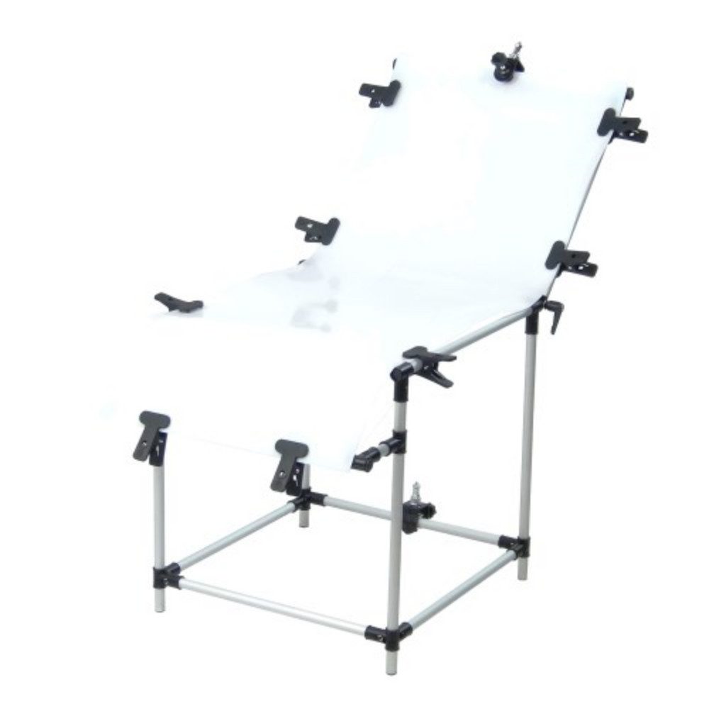 Das Set enthält großes Festklemmen für die sichere Befestigung von Hintergrundmaterialien sowie 2 verstellbare Lampenstützen, um die Lichtverhältnisse flexibel anzupassen. Das "Weniger Schatten Design" minimiert Querwellen im Aufnahmebereich und sorgt für eine gleichmäßige Beleuchtung Ihrer Aufnahmen.