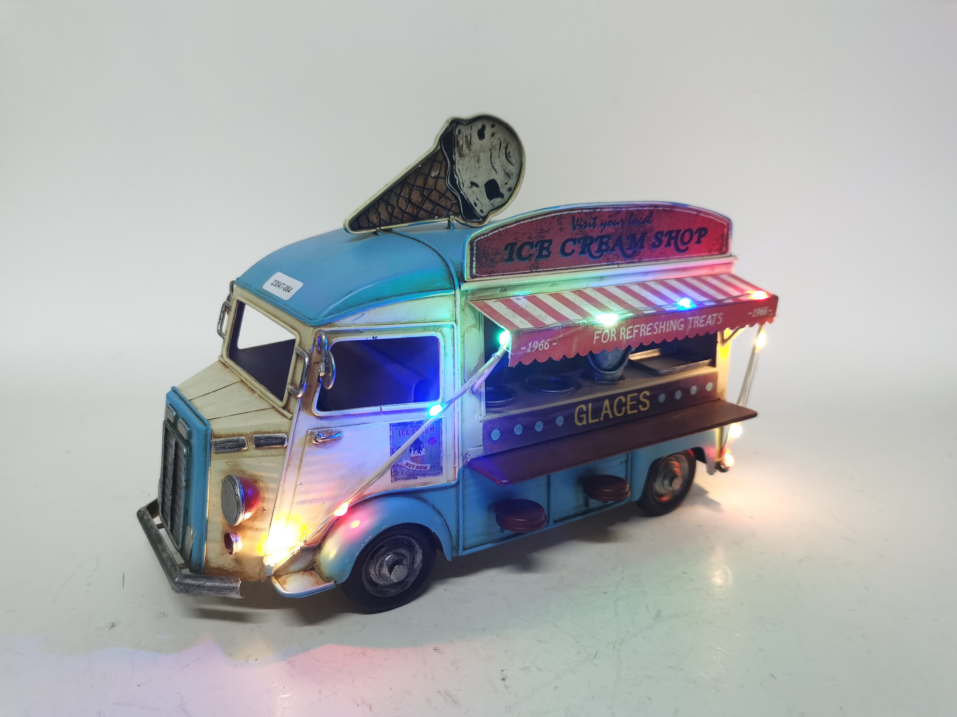 Der DynaSun 2304T-084 Eiswagen Wohnwagen ist nicht nur eine nostalgische Hommage an klassische Fahrzeuge, sondern auch ein einzigartiges Kunstwerk, das Handwerkskunst und historische Genauigkeit vereint. Ob als stilvolles Geschenk oder als besonderes Element in Ihrer Sammlung – dieser Metall-Truck verleiht jedem Raum eine zeitlose Eleganz und weckt die Faszination vergangener Zeiten.