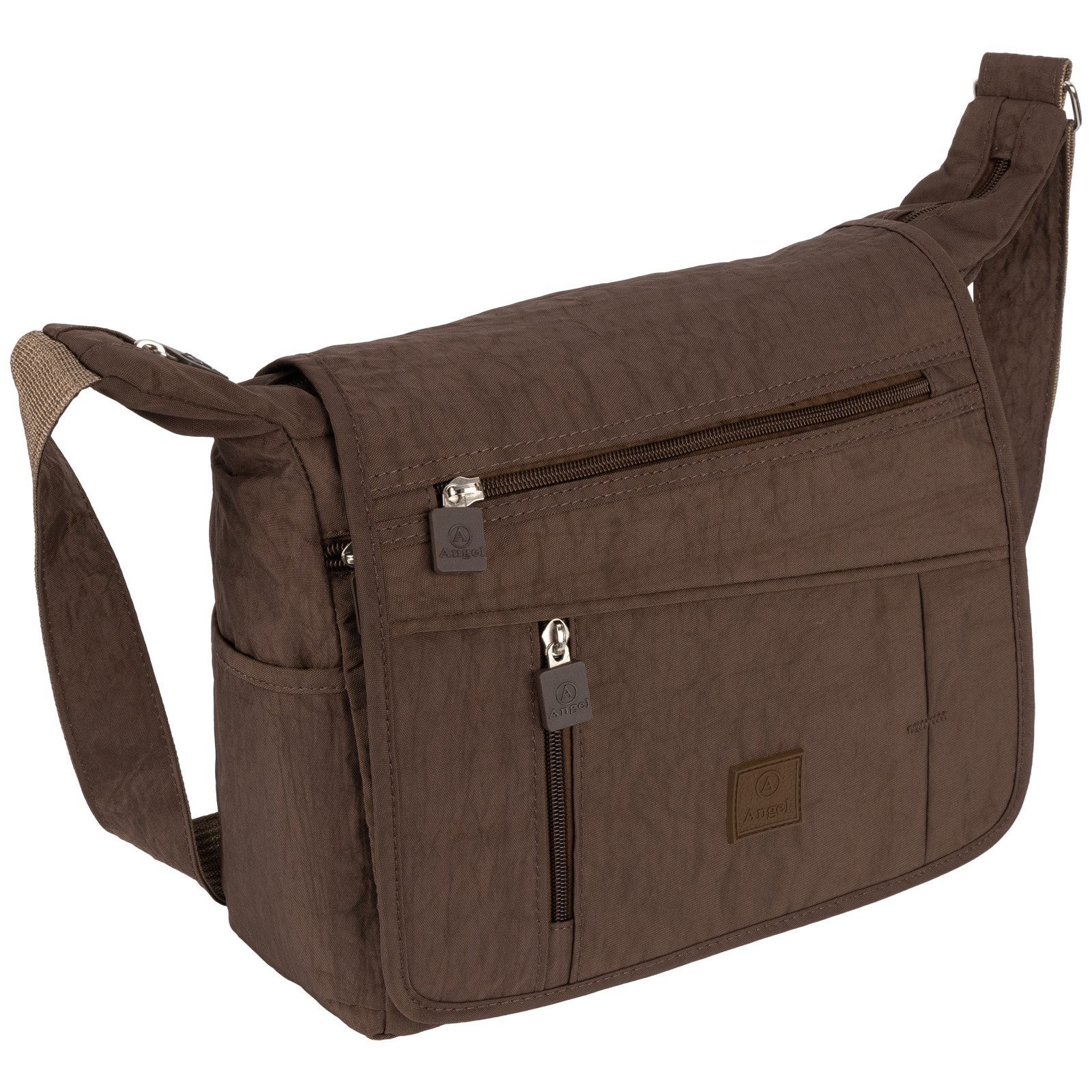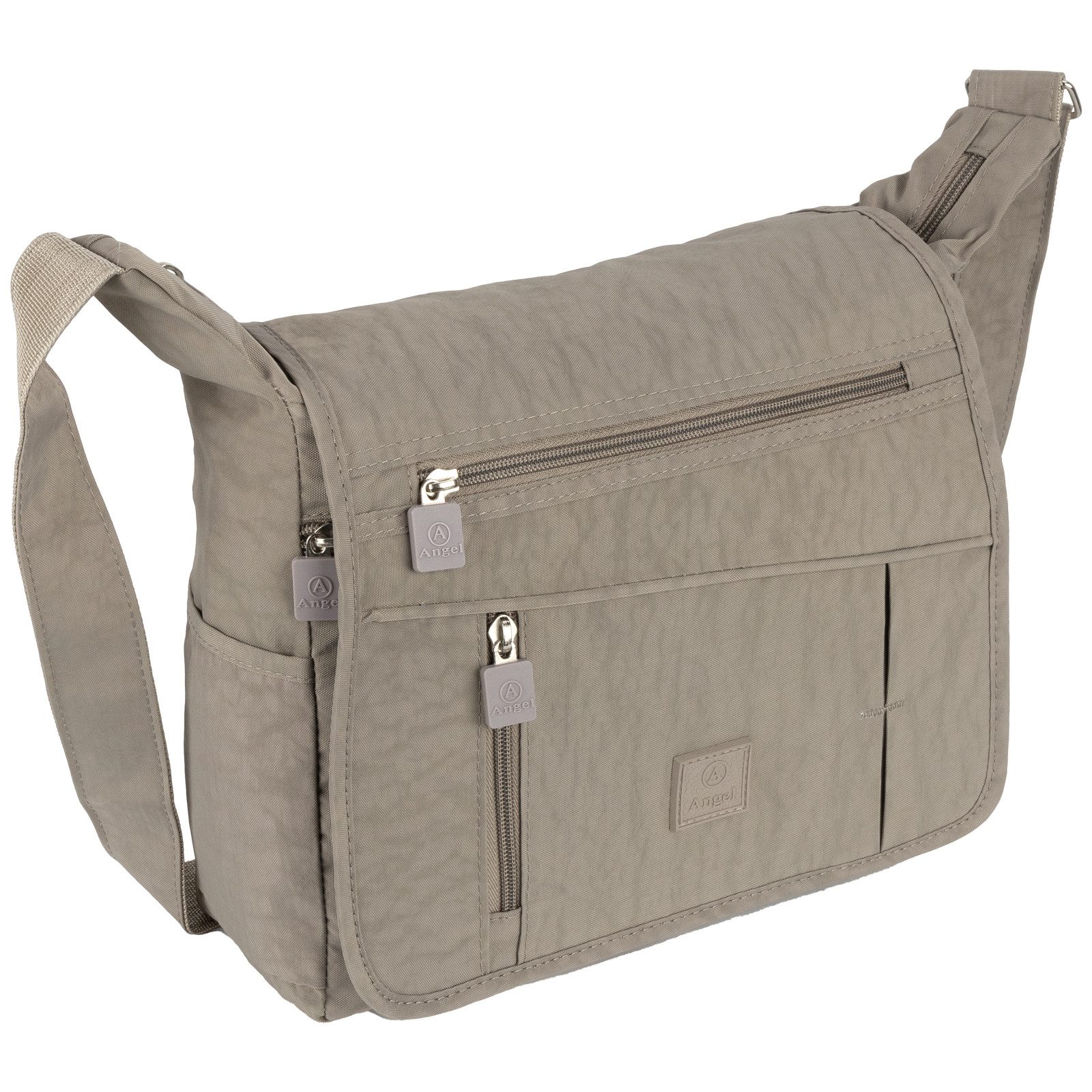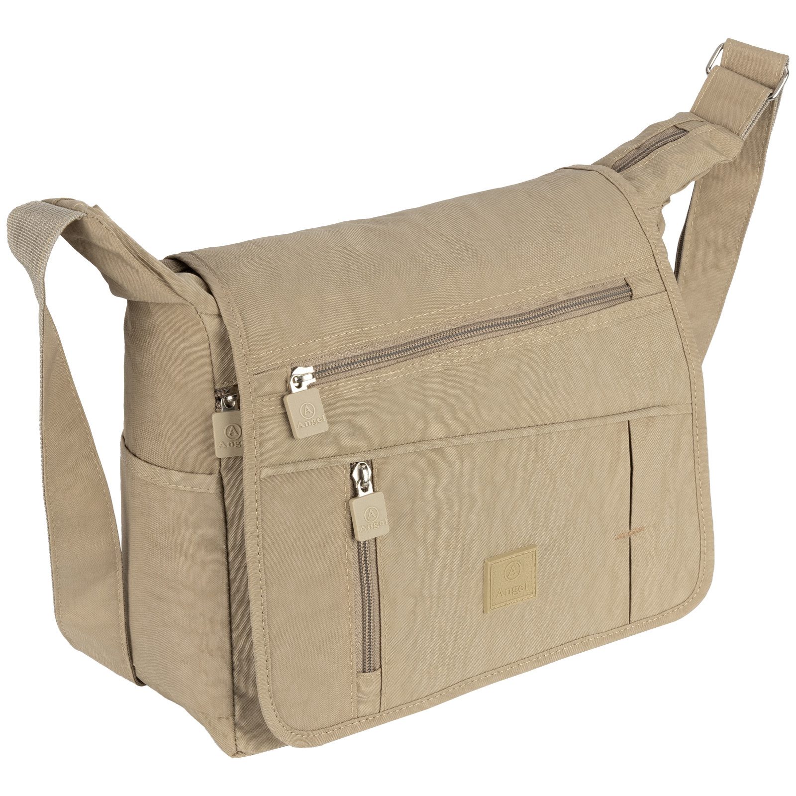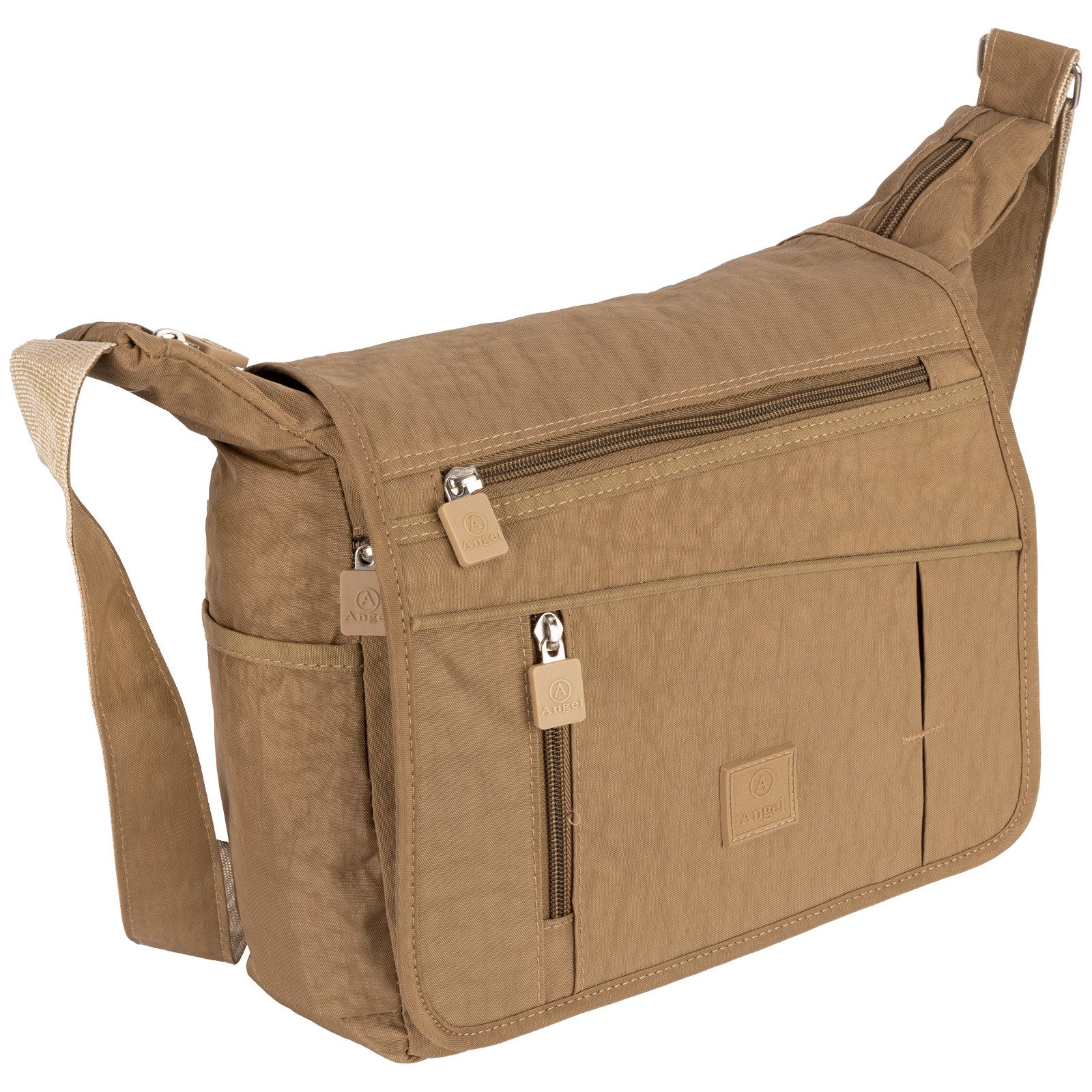 Unter dem Überschlag, welcher mit einem Klettverschluss verschlossen wird, befindet sich das Hauptfach mit Reißverschluss Im Inneren ein weiteres, kleineres Reißverschlussfach Auf dem Klettverschluss-Überschlag zwei Reißverschlussfächer Unter dem Klettverschluss-Überschlag ein großes Reißverschlussfach Auf der Rückseite ein großes Reißverschlussfach Seitlich zwei Einsteckfächer Ein längenverstellbarer Tragegurt: ca. 65 cm -125 cm lang und 3,8 cm breit hochwertiges, wasserabweisendes und pflegeleichtes Material Maximaler Tragekomfort Tasche kann als Schultertasche, Shopper, Weekender, Handtasche oder Henkeltasche verwendet werden Optimal für Freizeit, Schule, Arbeit und Reisen