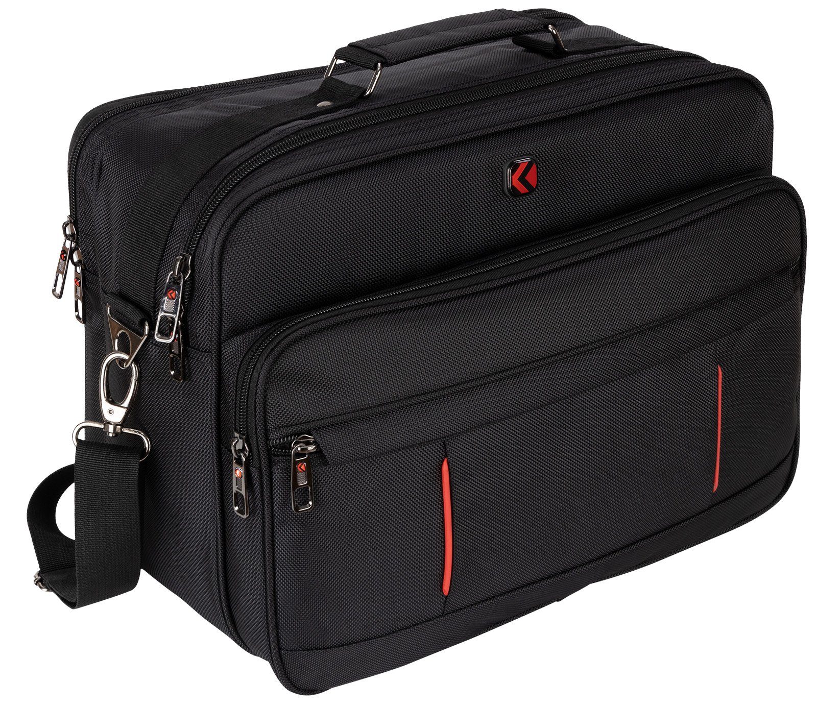 Ein großes Hauptfach mit doppeltem Reißverschluss passend für DIN A 4 Ordner, mit extra verstärktem Boden, im inneren ein gepolstertes Laptopfach Ein großes Rückenfach mit doppeltem Reißverschluss Ein Frontfach mit Reißverschluss, im Inneren Organizier (bestehend aus zwei Stiftehalterungen, einem Fach und einem Netzfach) Eine Fronttasche mit Reißverschluss Hinten ein großes Reißverschlussfach Trolleyhalterung auf der Rückseite Длинаnverstellbarer Tragegurt (bis ca. 140cm) mit Polsterpad Abnehmbarer Tragegurt mit stabilen Metallkarabinern Gepolsterter Tragegriff Vier Standfüße am Boden Hochwertiges, pflegeleichtes, strapazierfähiges, abwaschbares, wasserabweisendes und robustes Material Optimal für Freizeit, Arbeit und Reisen
