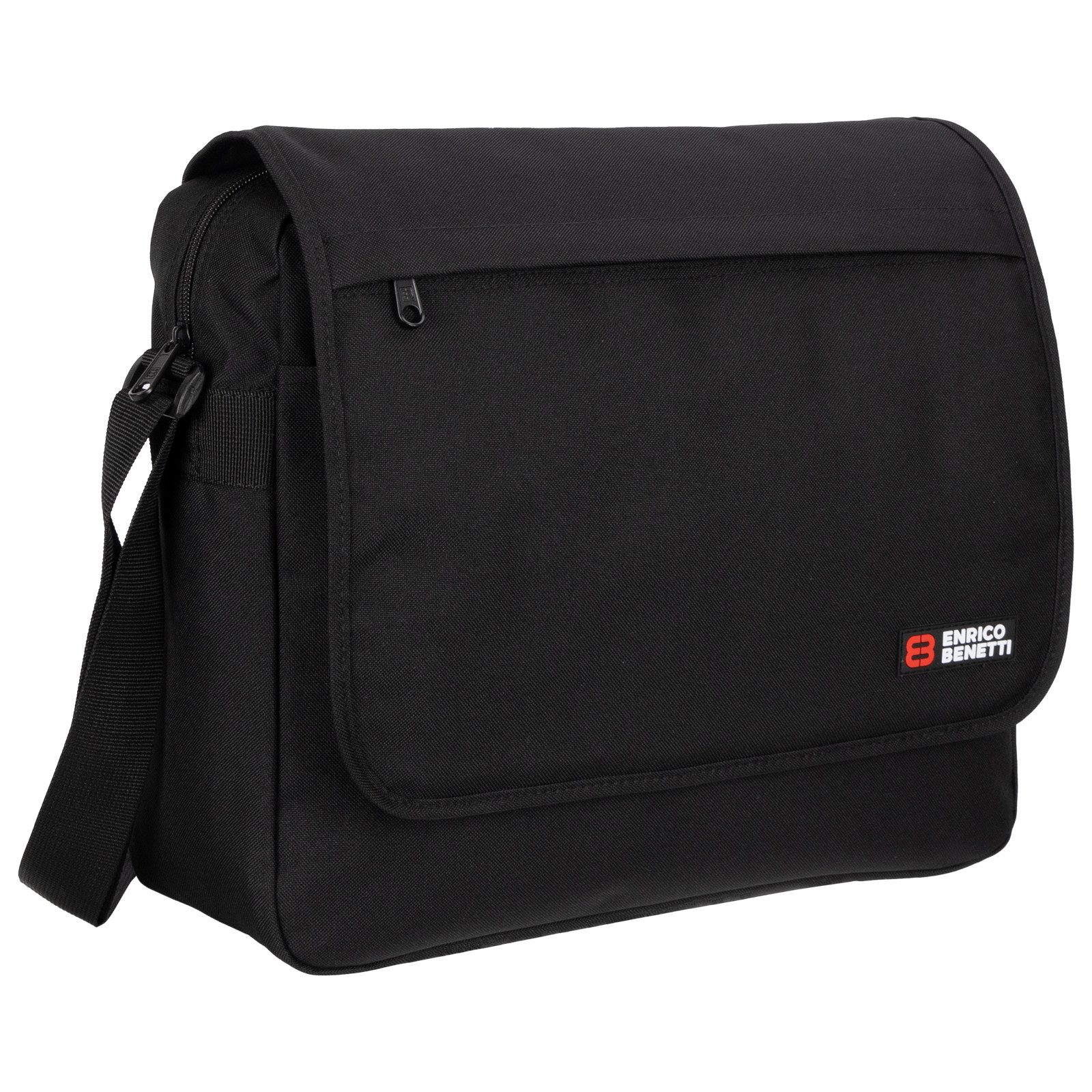 Marke: Enrico Benetti Außenmaß incl. Seitenfächer und Vorderfach: (HxBxT): 30cm x 38cm x 11cm (Variabel je nach Füllmenge) Volumen: ca.12,5 Liter Gewicht: ca. 530 g Material: Polyester (600D Polyester) Farbe: Schwarz