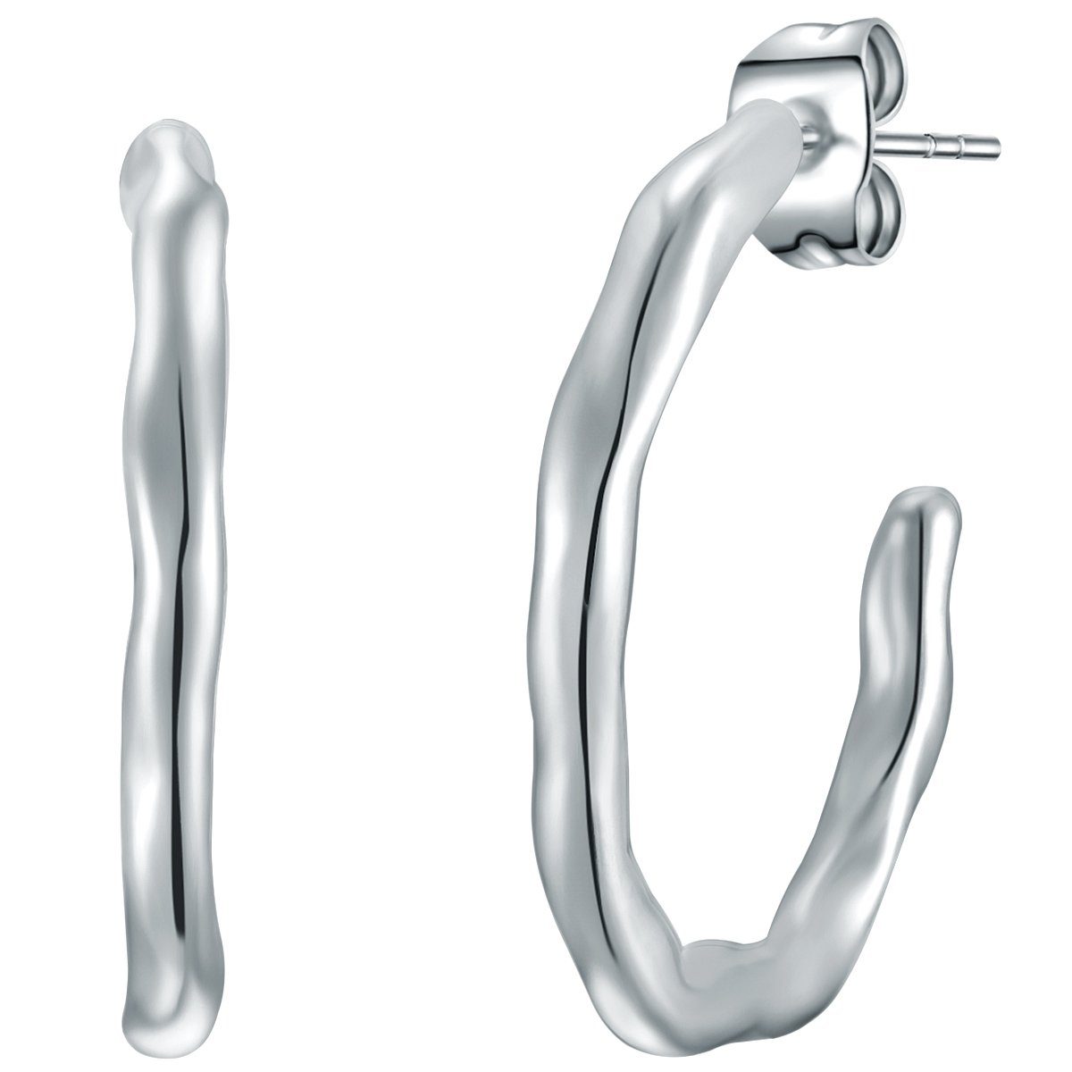 Diese Ohrringe des Labels Eastside verzaubern alle Fashionistas, die besondere Accessoires in ihrem Schmuckkästchen lieben: Das markante organische Design interpretiert die zeitlose Creolenform neu - minimalistisch und gleichzeitig raffiniert harmonieren die Ohrringe mit jedem Look. Das Ergebnis ist ein Eyecatcher am Ohrläppchen, der mit stilvollem Understatement punktet. Gefertigt aus strapazierfähigem Edelstahl, sind die Ohrringe perfekt für alle Fans des kühl glänzenden und robusten Edelmetalls. Ein praktischer Steckverschluss sorgt für hohen Tragekomfort und einfaches An- und Ablegen der Halbcreole.