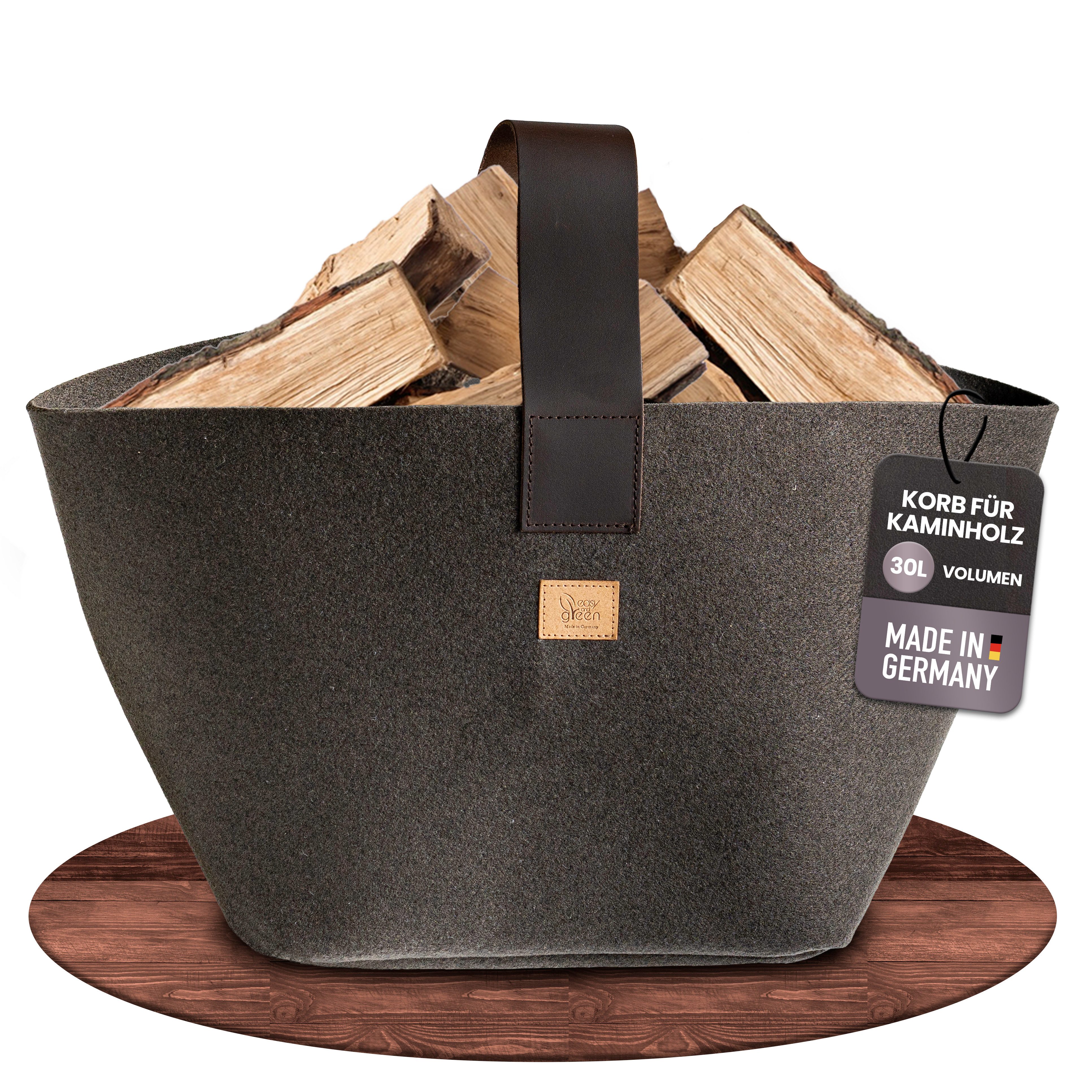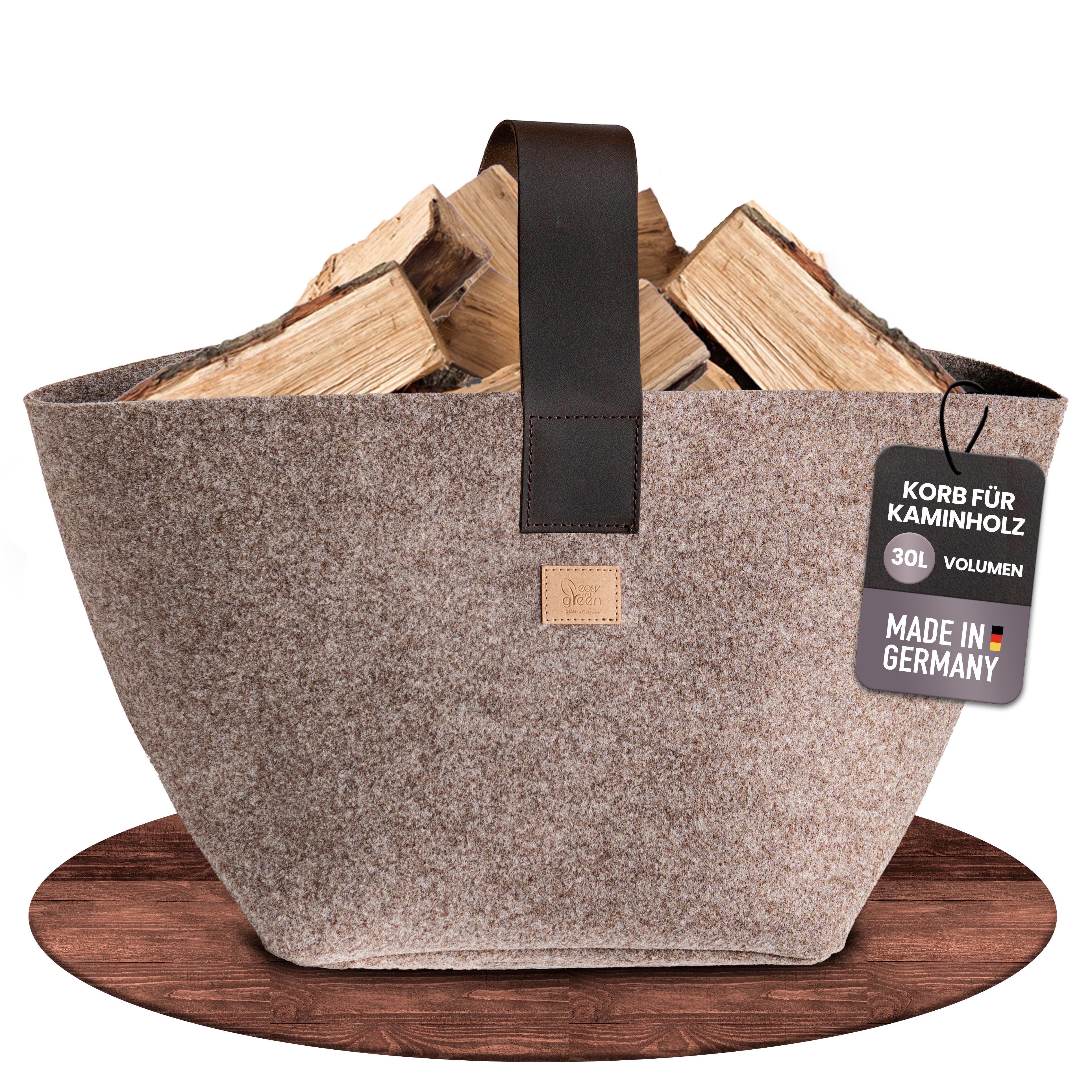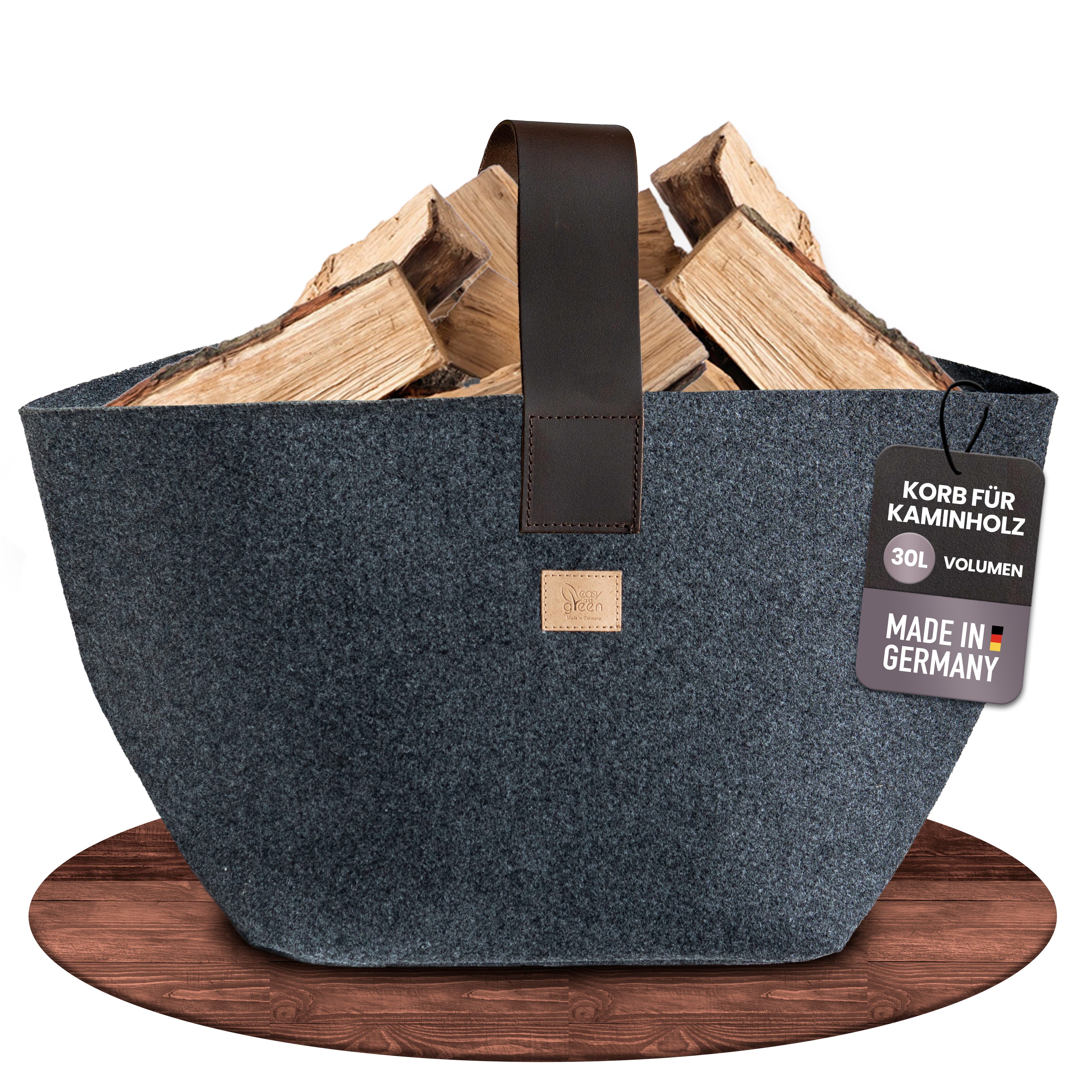 Entdecke unseren handgefertigten Kaminholzkorb Filz, gefertigt in Deutschland aus recycelten PET-Flaschen. Mit 40 Litern Füllvolumen ist dieser robuste Holzkorb perfekt für Dein Kaminholz. Ideal als Holzkorb für Kamin, Brennholzkorb und Feuerholzkorb. Ein stilvoller und umweltfreundlicher Korb für Kaminholz.