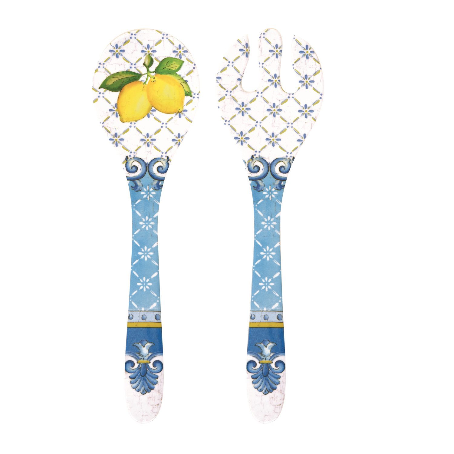 • Lieferumfang: 1 Salatbesteck Besteck SORRENTO mit antikem Zitronenmotiv weiß blau gelb aus hochwertigem Melamin
