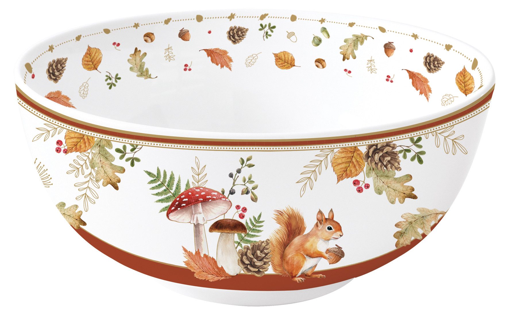 Lieferumfang: Servierschale AUTUMN BREEZE mit herbstlichem Motiv mit Eichhörnchen, Eicheln, Pilzen, Blättern und Zapfen