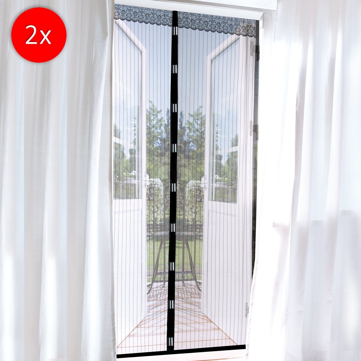 Lieferumfang | 2x Moskitonetz mit Magnetverschluss, 40x Reißzwecken, 22 Paar selbstklebende Klettverschlüsse, (2 x groß; 20 x klein) |