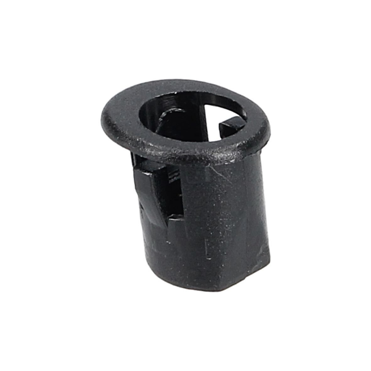 • Es sind 2 dieser schwarzen Kunststoffhülsen zur Befestigung an den seitlichen Küchenmöbeln in einem Gerät eingesetzt.