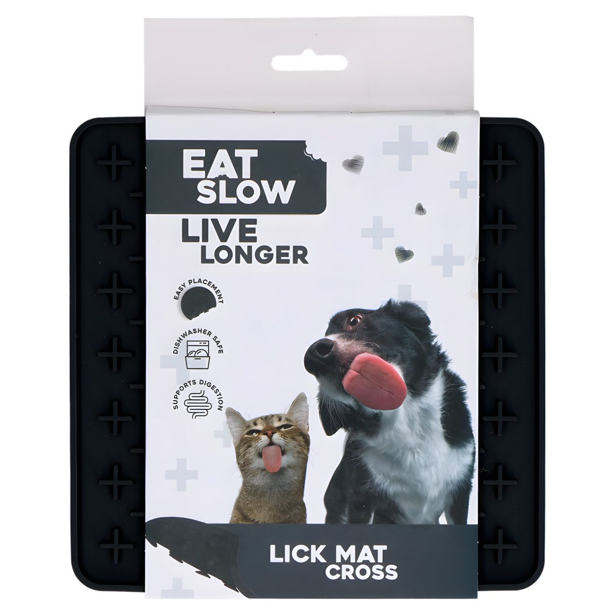 EAT SLOW LIVE LONGER Antischlingnapf Leckmatte mit Kreuzen anthrazit