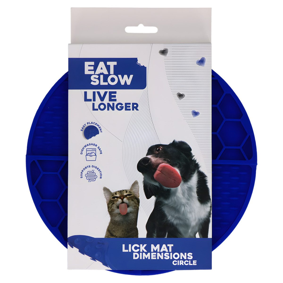 EAT SLOW LIVE LONGER Antischlingnapf runde Leckmatte mit tiefen Fächern blau