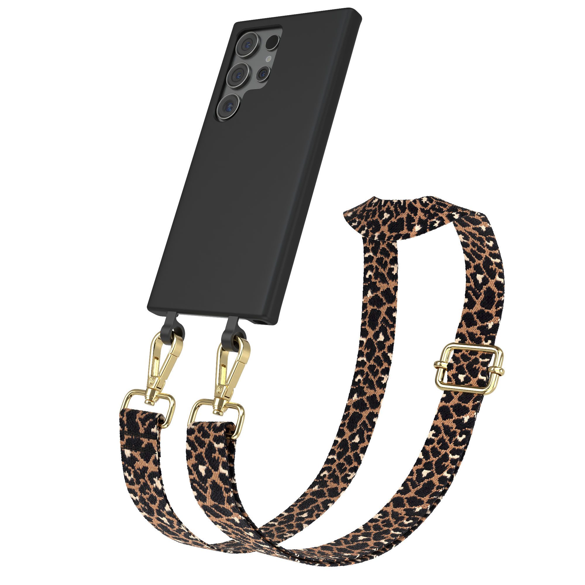 EAZY CASE Handykette 2in1 Hülle mit Band für Samsung Galaxy S24 Ultra 6,8 Zoll, Schutzhülle zum Umhängen Hülle mit Leo Umhängeband Kettenhülle Schwarz