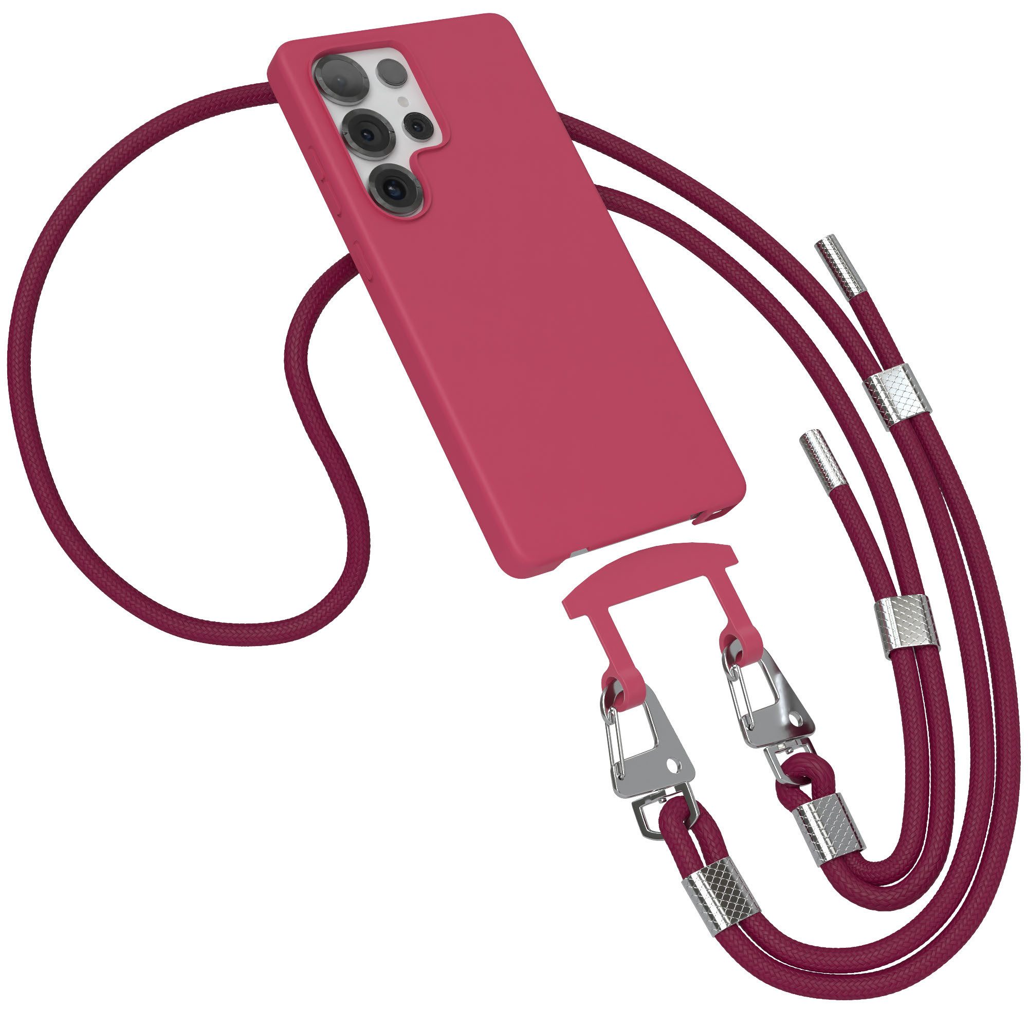 Die einzigartige Vielseitigkeit dieser Handykette ermöglicht es dir, sie nach deinen Wünschen zu tragen. Nutze sie als Handytasche zum Umhängen oder als stylische Halskette. Dank der Karabiner-Verschlüsse kannst du die Bänder problemlos austauschen oder die Hülle auch ohne Band verwenden, indem du einfach das Endstück entfernst.