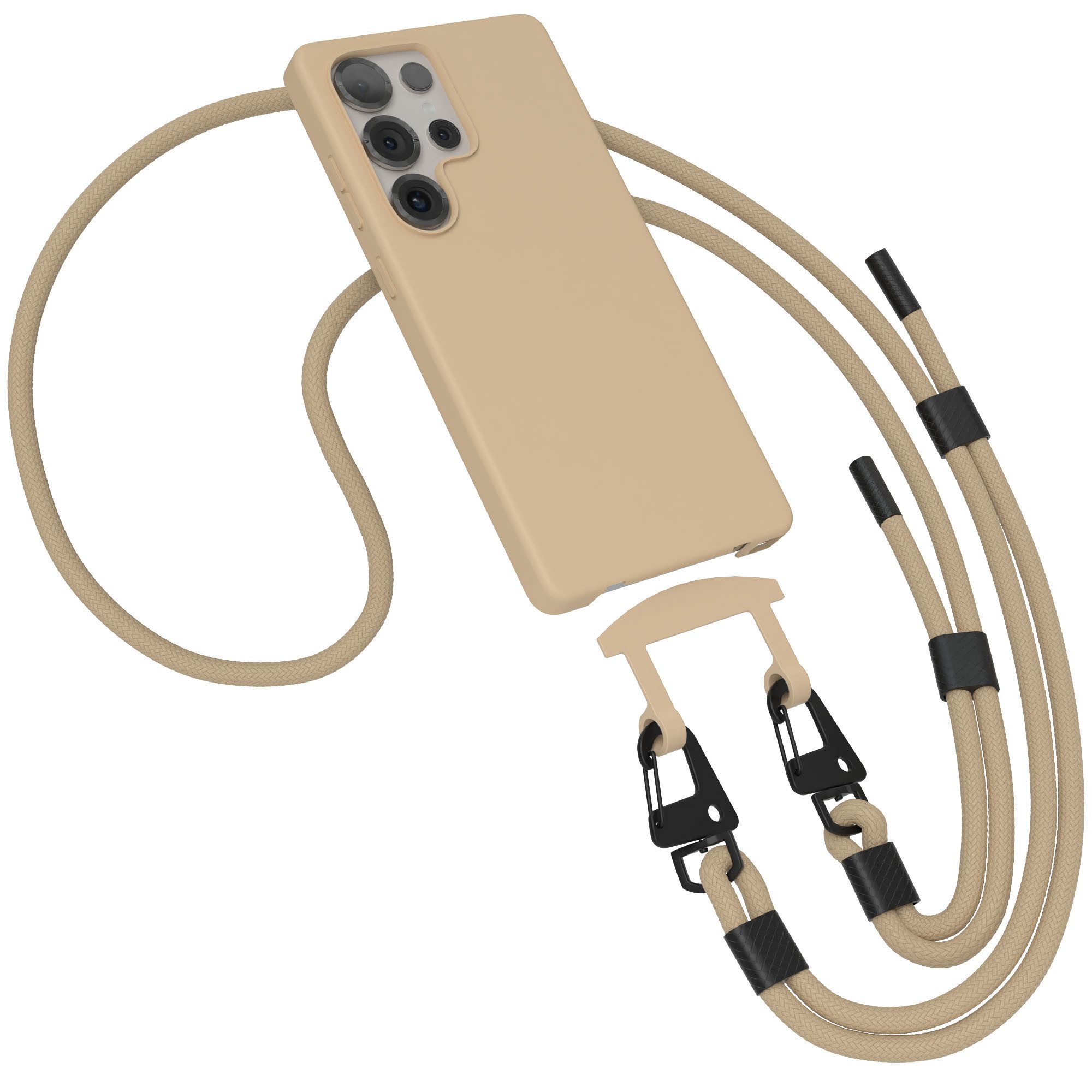 Das sichere Stecksystem sorgt dafür, dass der Adapter mit Silikonüberzug fest am Cover sitzt. Sobald du dein Handy einsetzt, fixieren sich die Ösen durch den entstehenden Anpressdruck und bieten perfekten Halt für deine Kette.