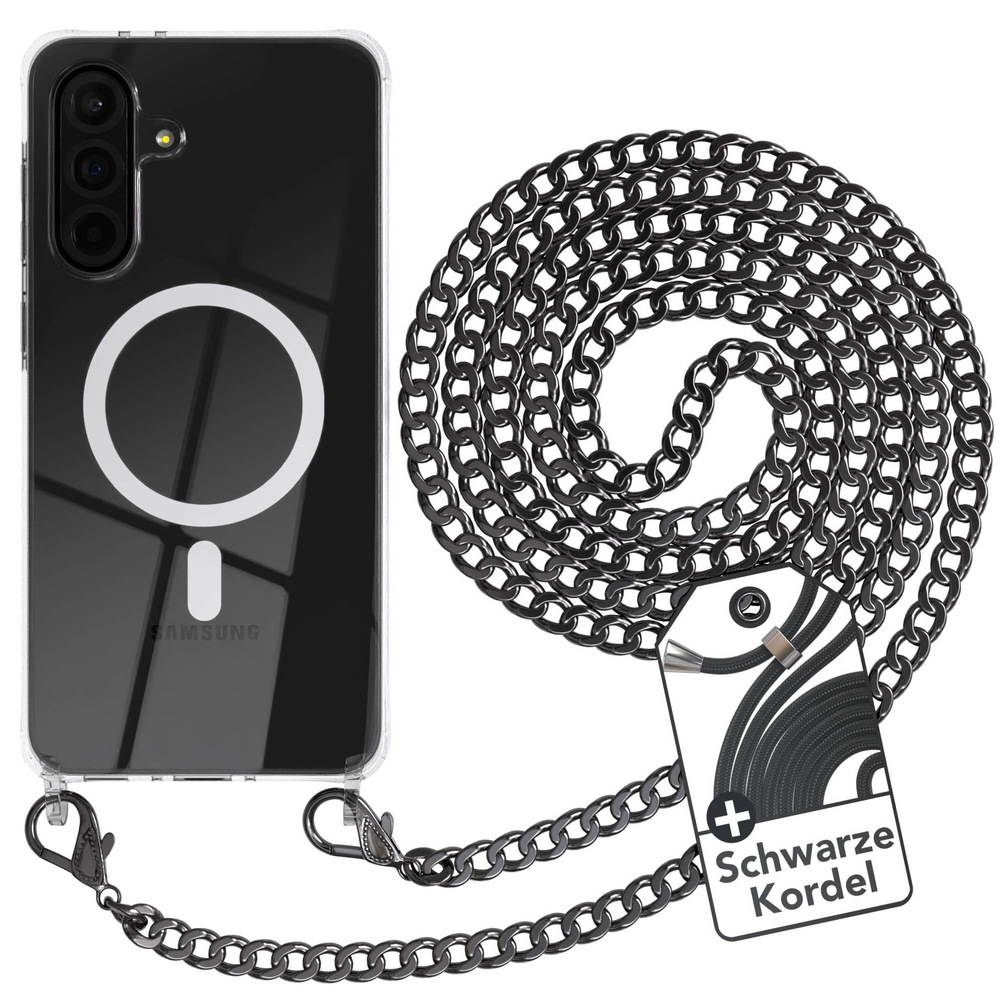 Lieferumfang | 1x MagSafe Silikon Hülle + gewählte Metallkette + Stoffkordel Schwarz, 1x Mikrofasertuch |