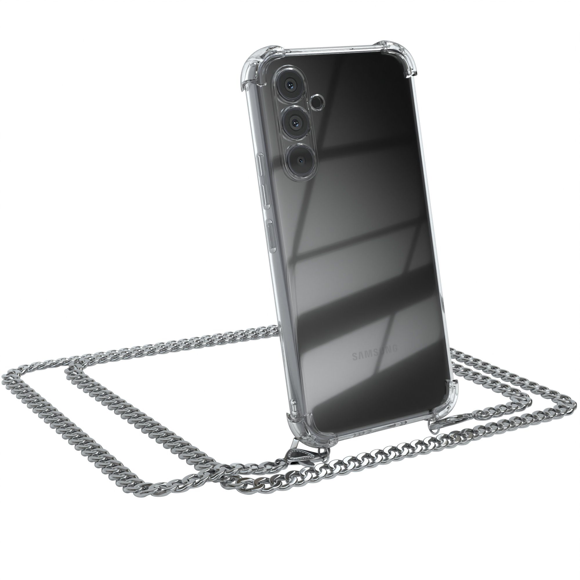 Ausstattung | Stoßschutz, Flex-Press-Buttons, Kameraaussparung, Silikonfassung, Stoffkordel, Metallkette |