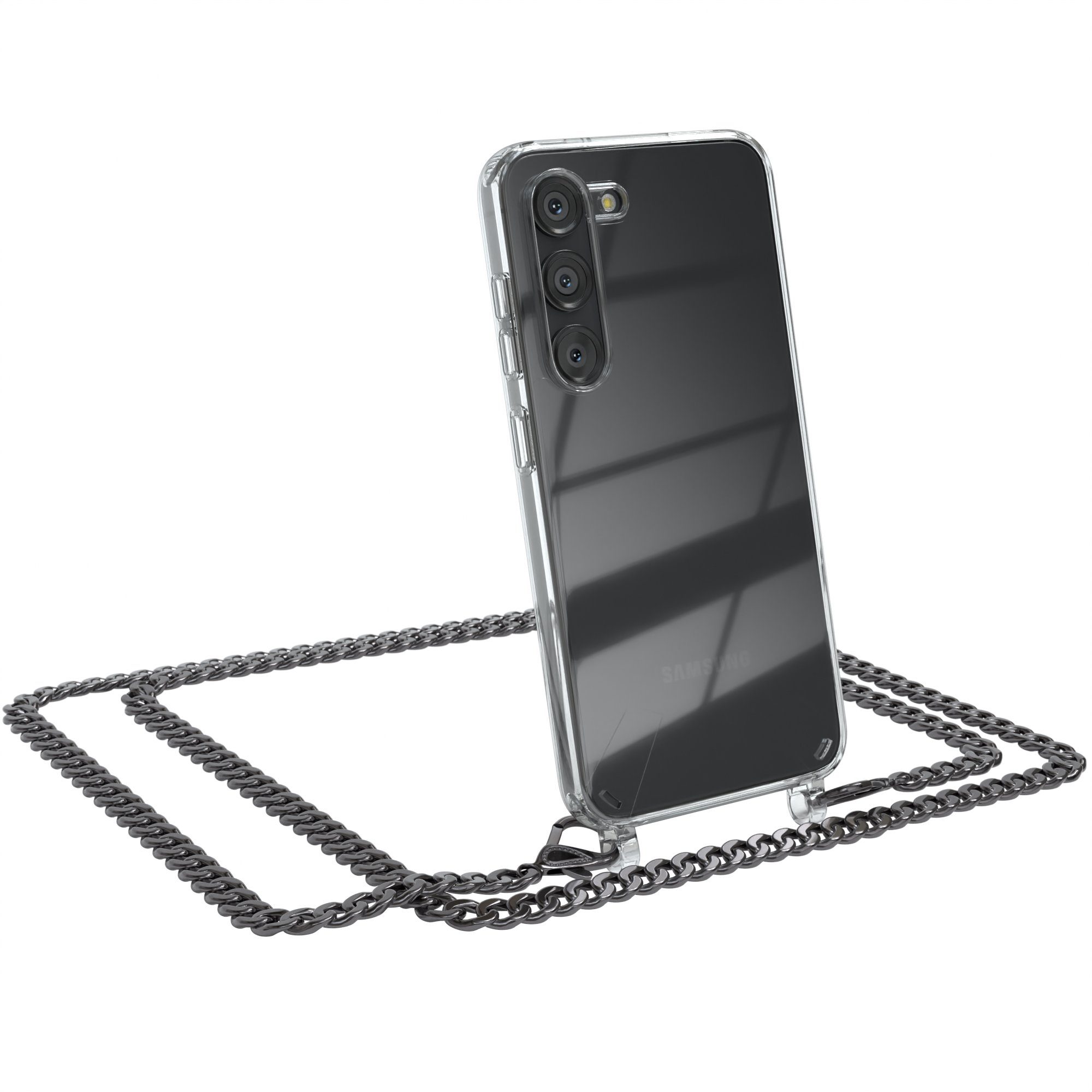 Ausstattung | Stoßschutz, Flex-Press-Buttons, Kameraaussparung, Silikonfassung, Stoffkordel, Metallkette |
